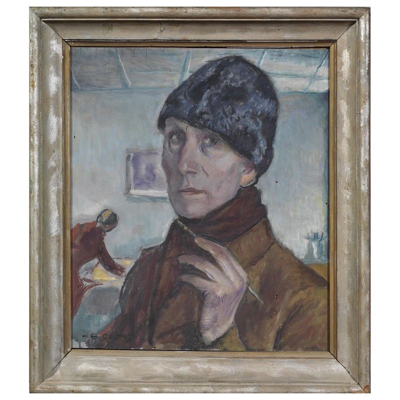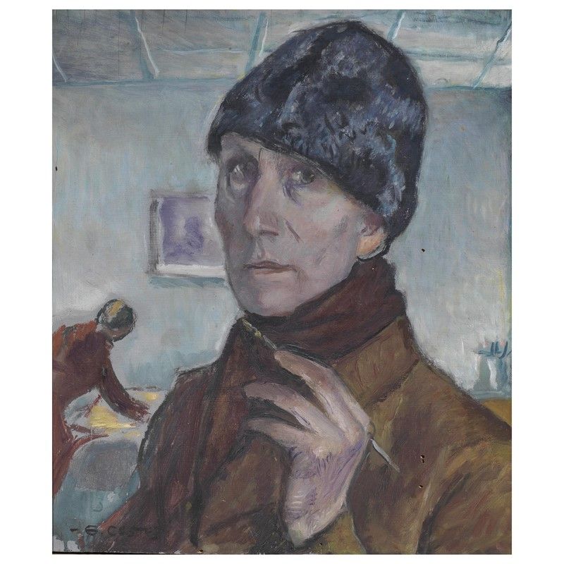 v) SELF-PORTRAIT WITH ASTRAKAN HAT oil on plywood, 44x37.5 cm signed lower left