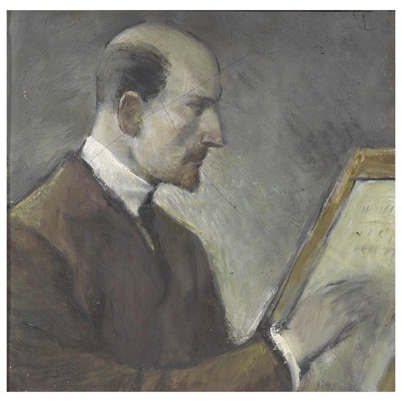 r) PORTRAIT OF A MAN WITH LECTERN oil on plywood, 44x37.5 cm