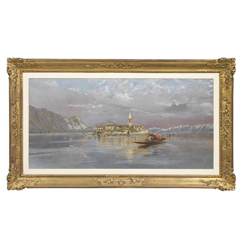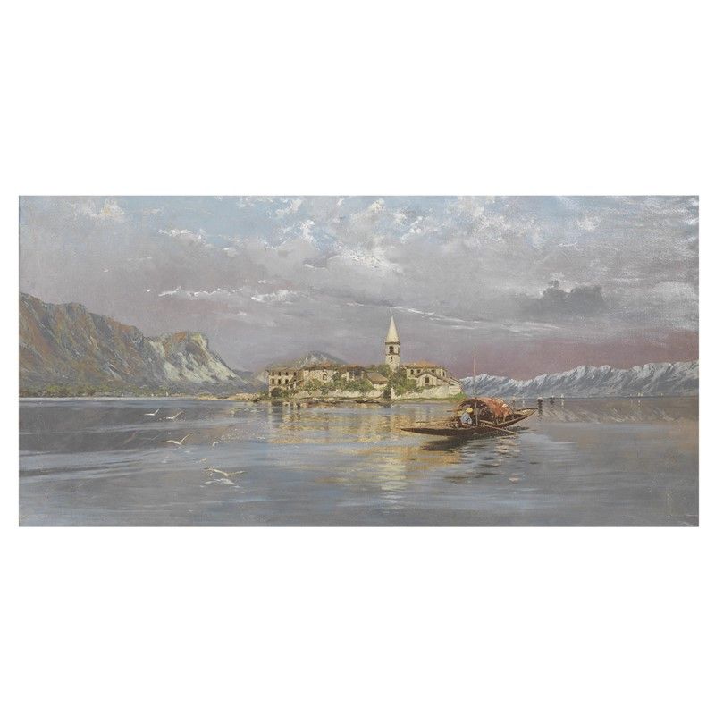 FISHERMEN ISLAND, LAKE MAGGIORE oil on canvas, 64.5x120 cm on the reverse: declaration of authenticity signed by the artist's wife and dated “14 Luglio 1916”