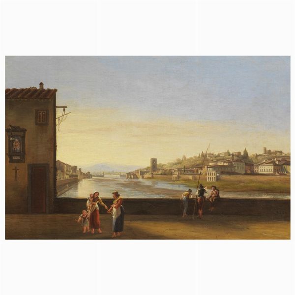 Tuscan school, 19th century VIEW OF FLORENCE oil on canvas, 35x53 cm dated 1844 lower right on the reverse: on the stretcher inscribed fatto dall'/ Ill.mo Sig. Scipione Capponi/ Veduta di Firenze