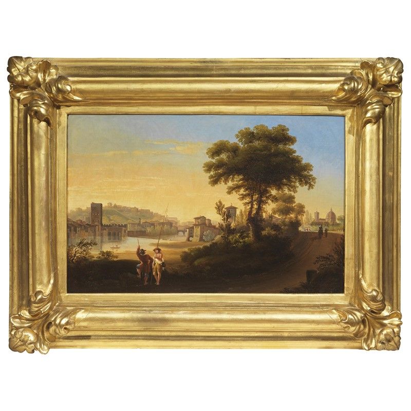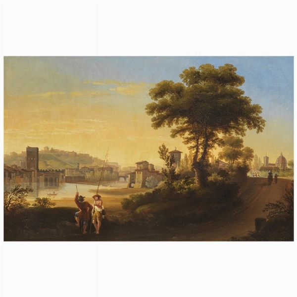 Tuscan school, 19th century VIEW OF FLORENCE oil on canvas, 35x53 cm initialled lower right on the reverse: on the stretcher inscribed fatto dall'/ Ill.mo Sig. Scipione Capponi/ Veduta di Firenze