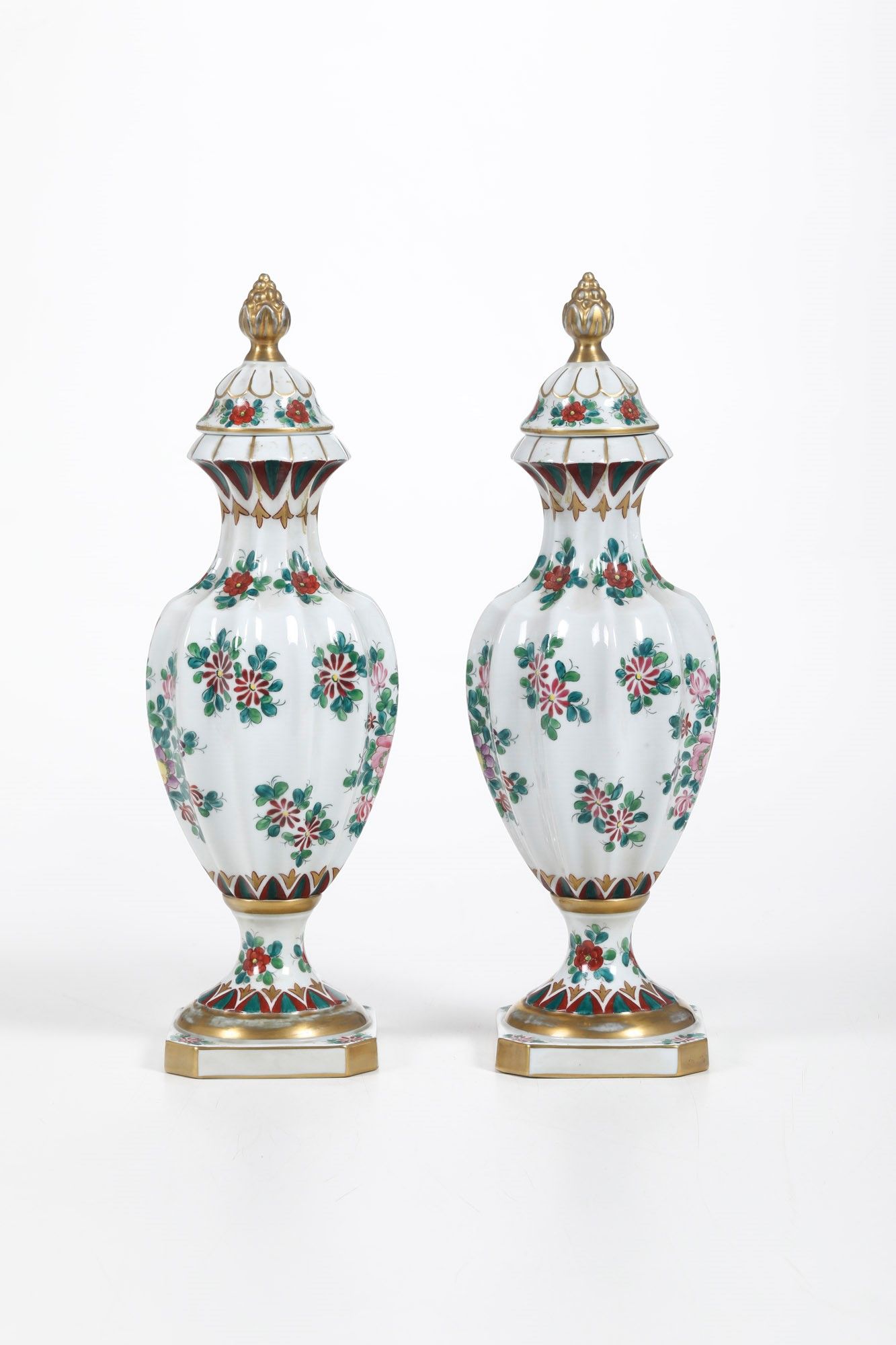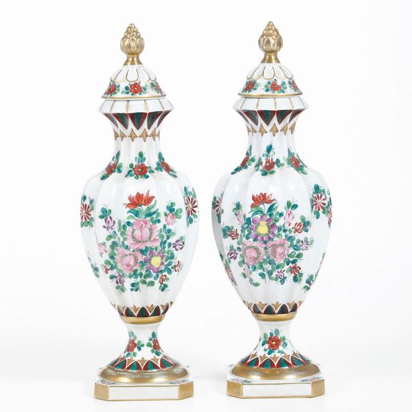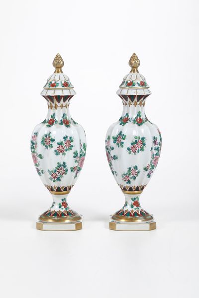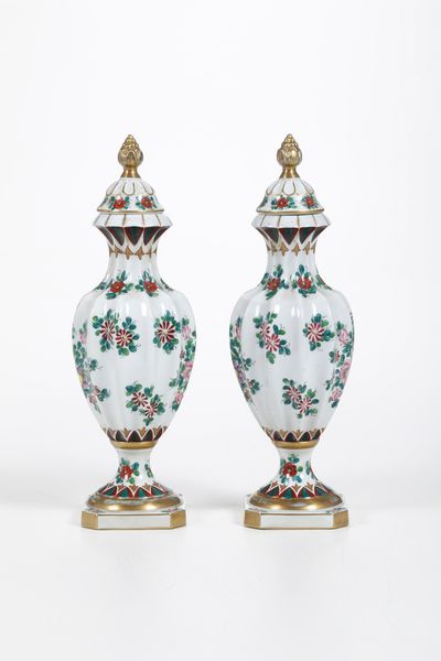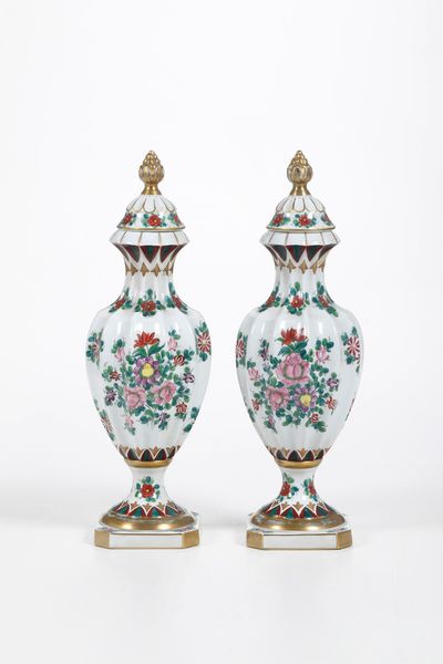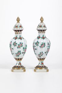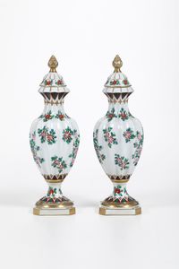 Coppia di vasi con coperchio.
