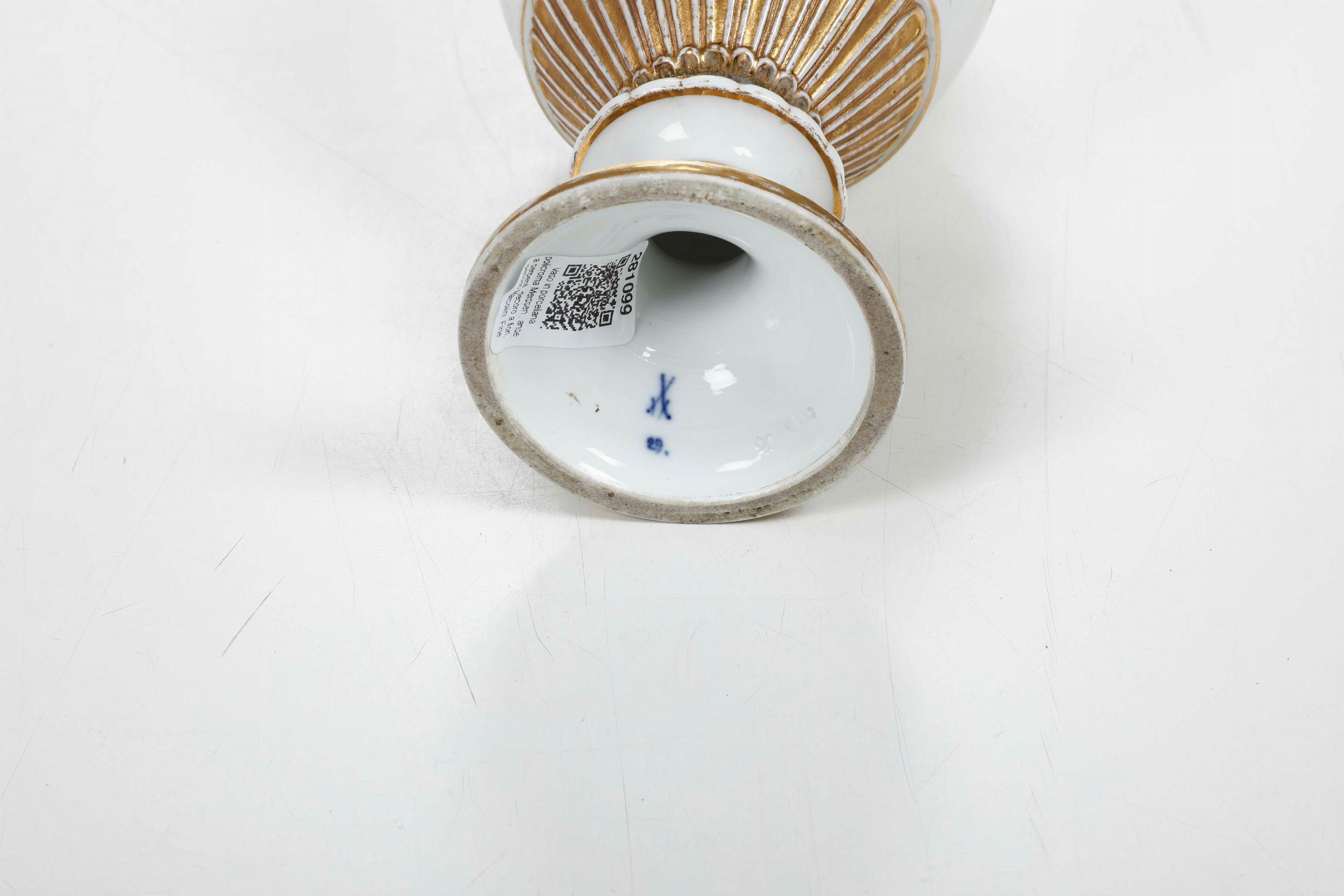 Porcellana policroma e dorata. Marca: spade in blu. Altezza: cm 27,8. Conservazione: buona; usure all’oro