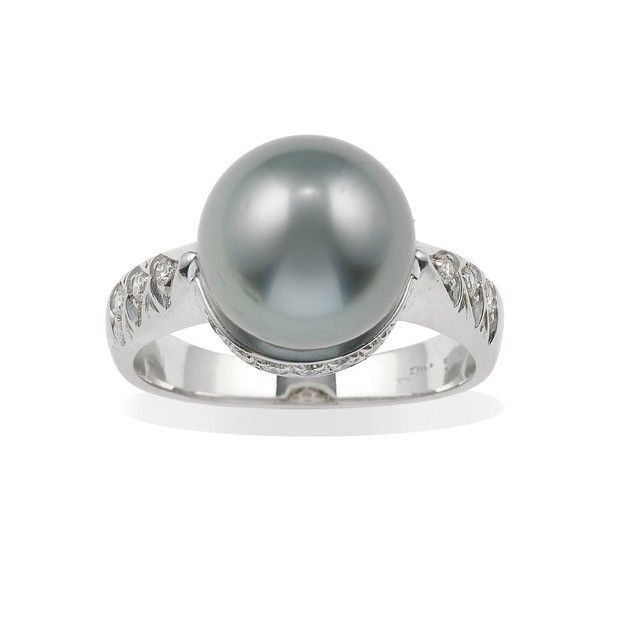 Anello con perla coltivata grigia e piccoli diamanti