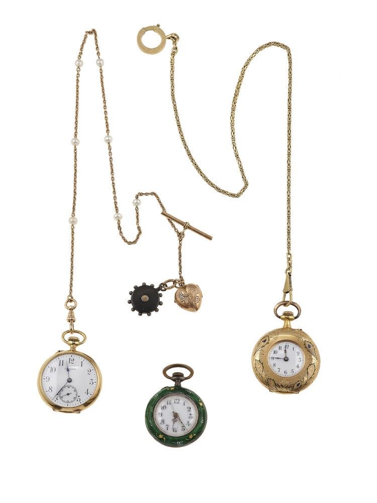 Lotto composto da tre orologi da tasca di cui due con catena