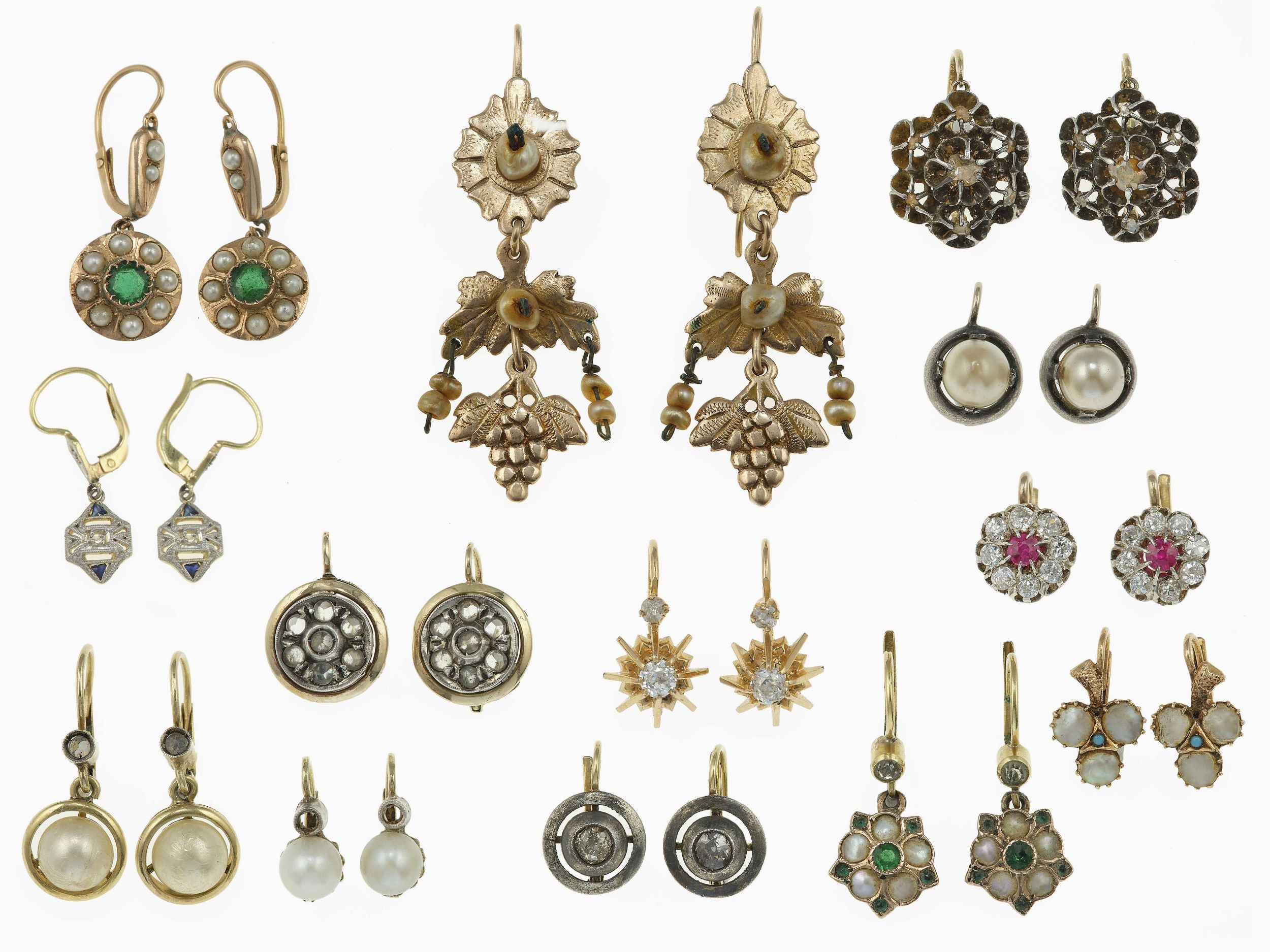Lotto composto da tredici paia di orecchini con piccoli diamanti, perle, gemme s [..]