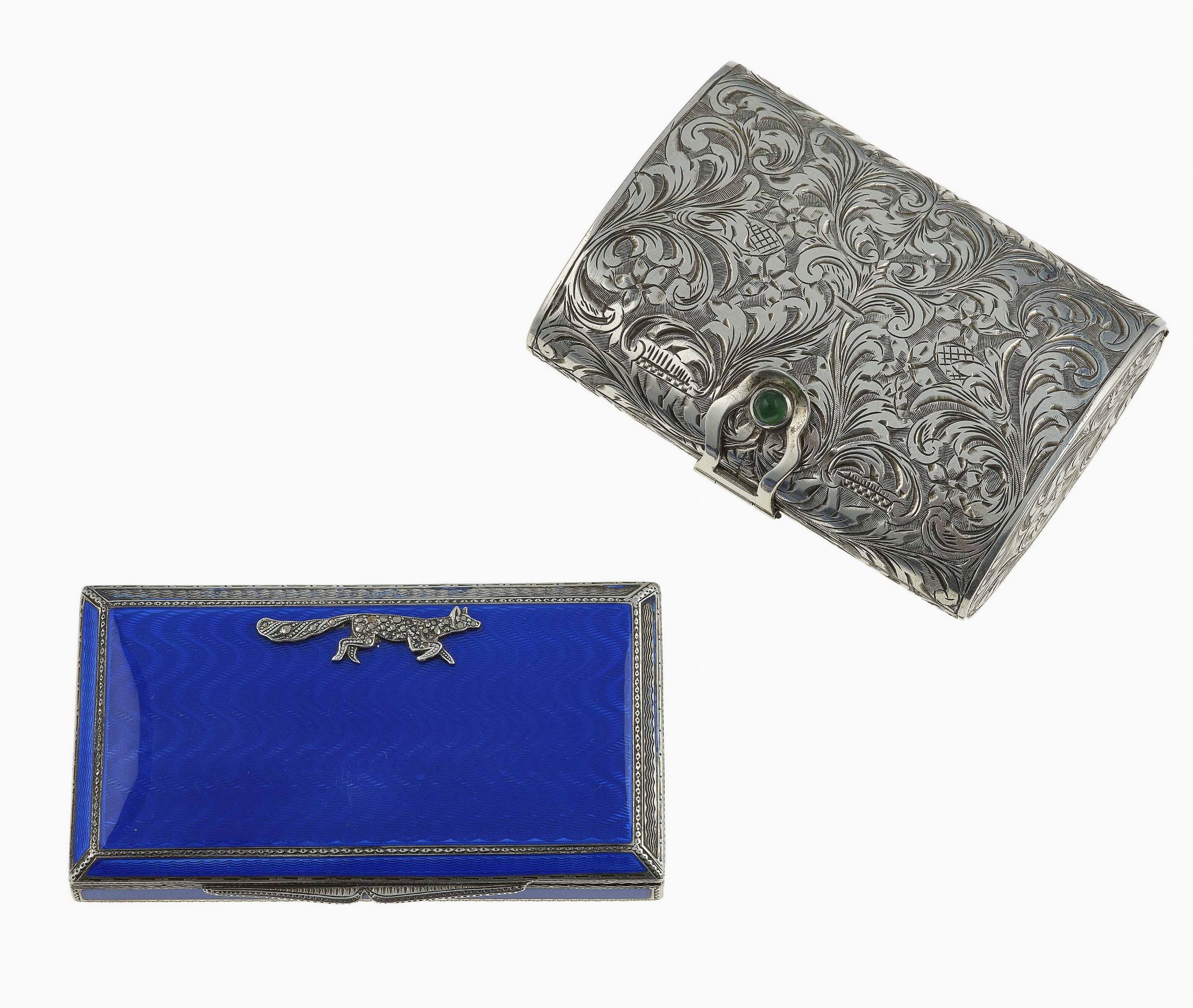 Lotto composto da un portabiglietti da visita ed una scatola in smalto blu