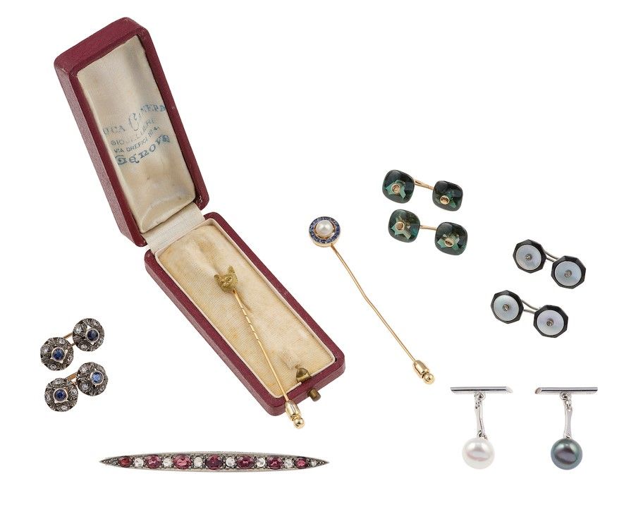 Lotto composto da una spilla, due spilloni e quattro paia di bottoni da polso
