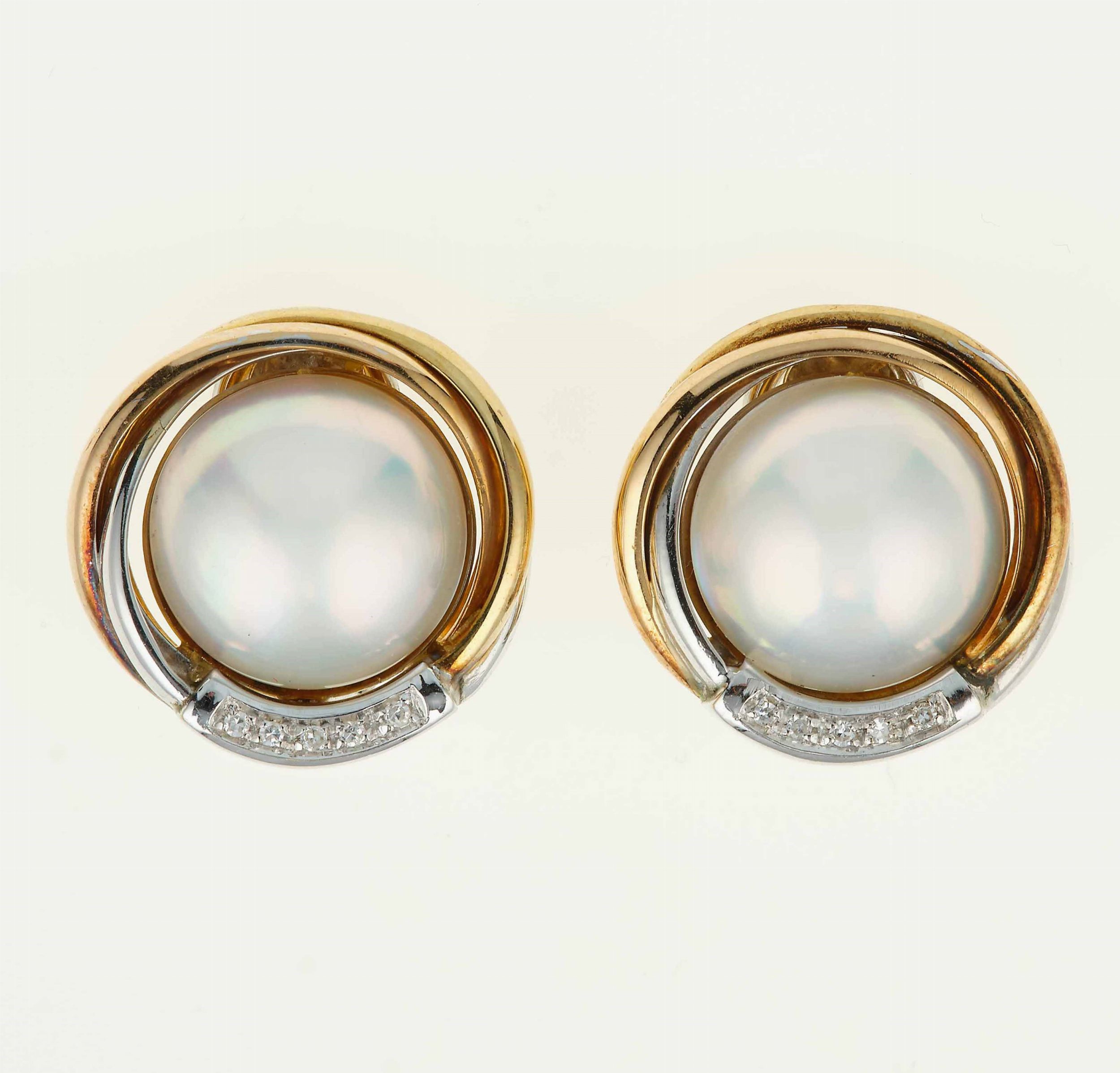 Orecchini con perle mabé e piccoli diamanti taglio huit-huit