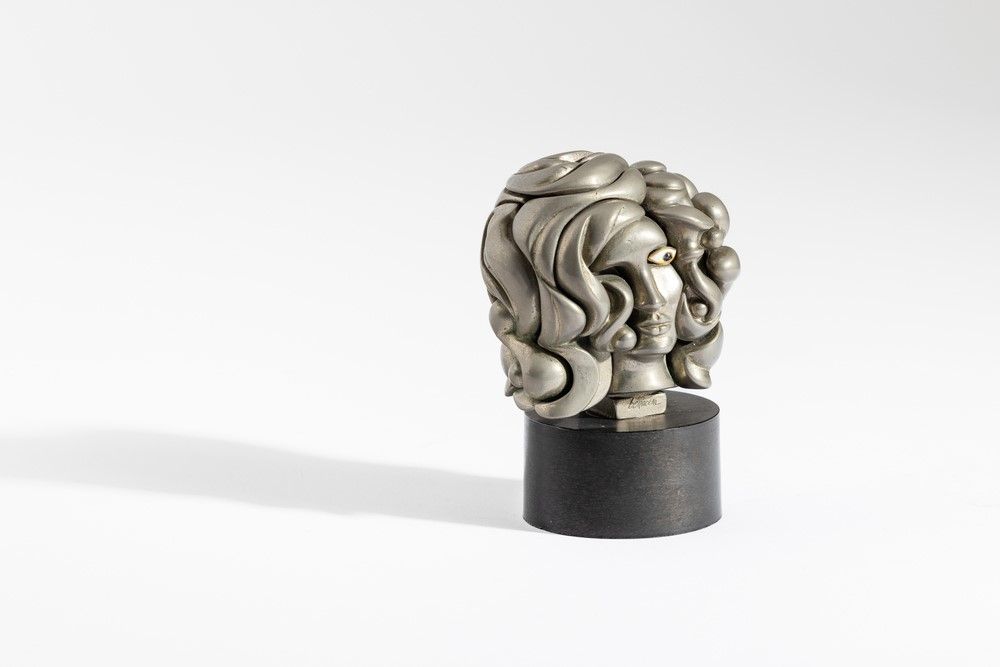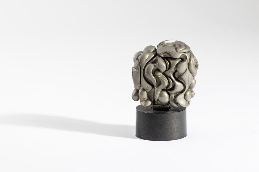 scultura in metallo nichelato, Largh. 7,1 - Prof. 5,3 - Alt. 10,3 Cm