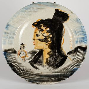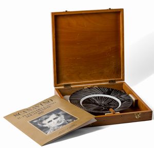 piatto in ceramica entro cofanetto in legno, Prof. 25 Cm 1970 es. 13/500 datato in basso a destra, firmato e [..]