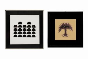 matrice applicata su tavola del libro-scultura “Il bene raro”, Largh. 34 - Alt. 24,5 Cm 1970 siglato in basso [..]