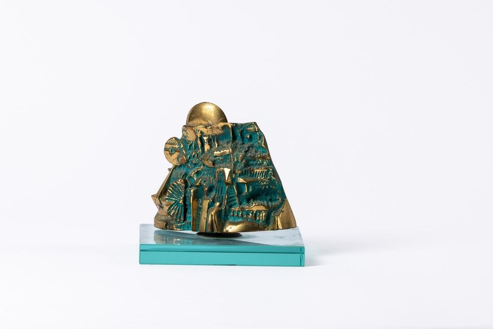 scultura in bronzo dorato, Largh. 14,5 - Prof. 14,5 - Alt. 14 Cm