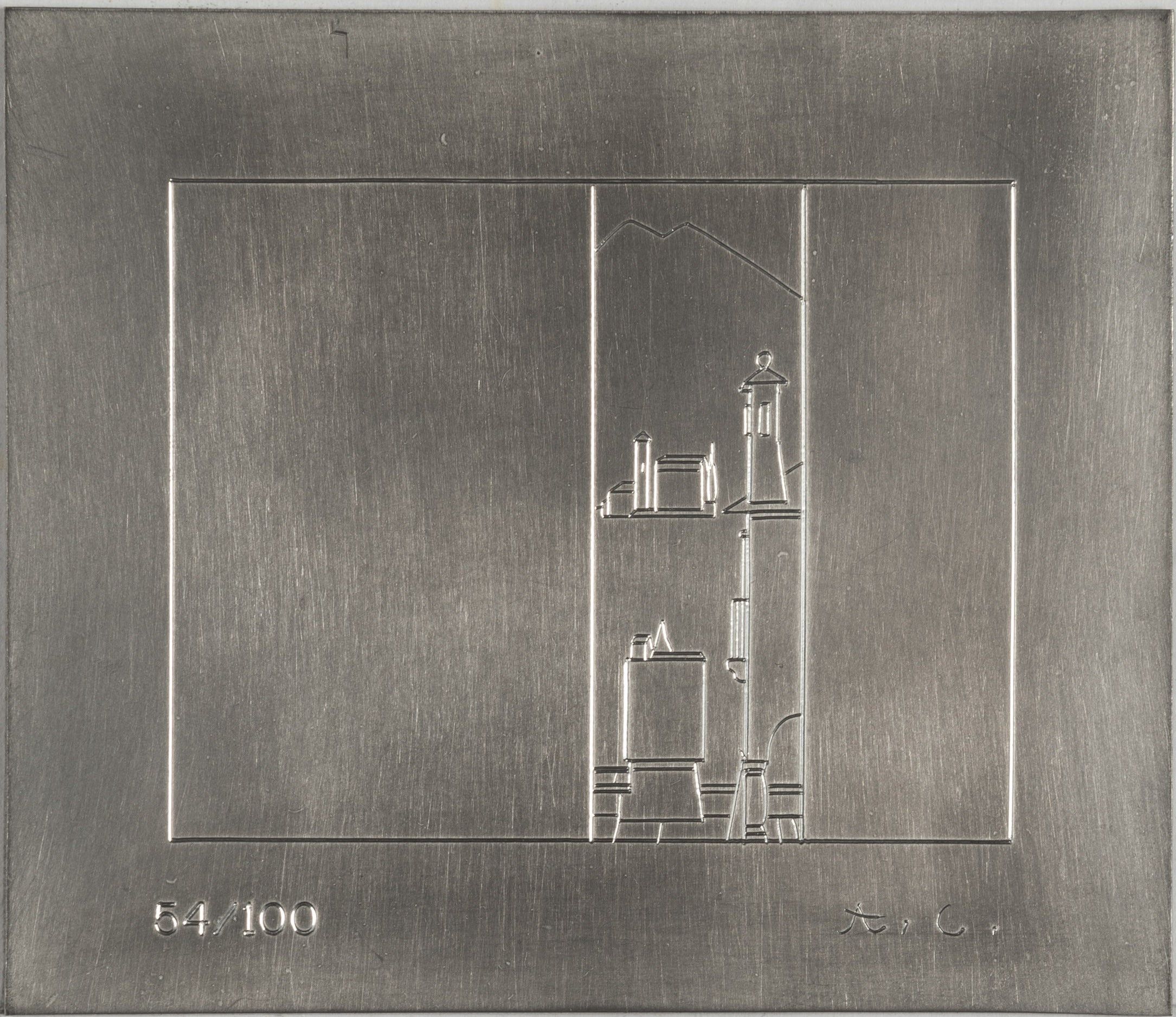 incisione su peltro, Largh. 8,5 - Alt. 10 Cm