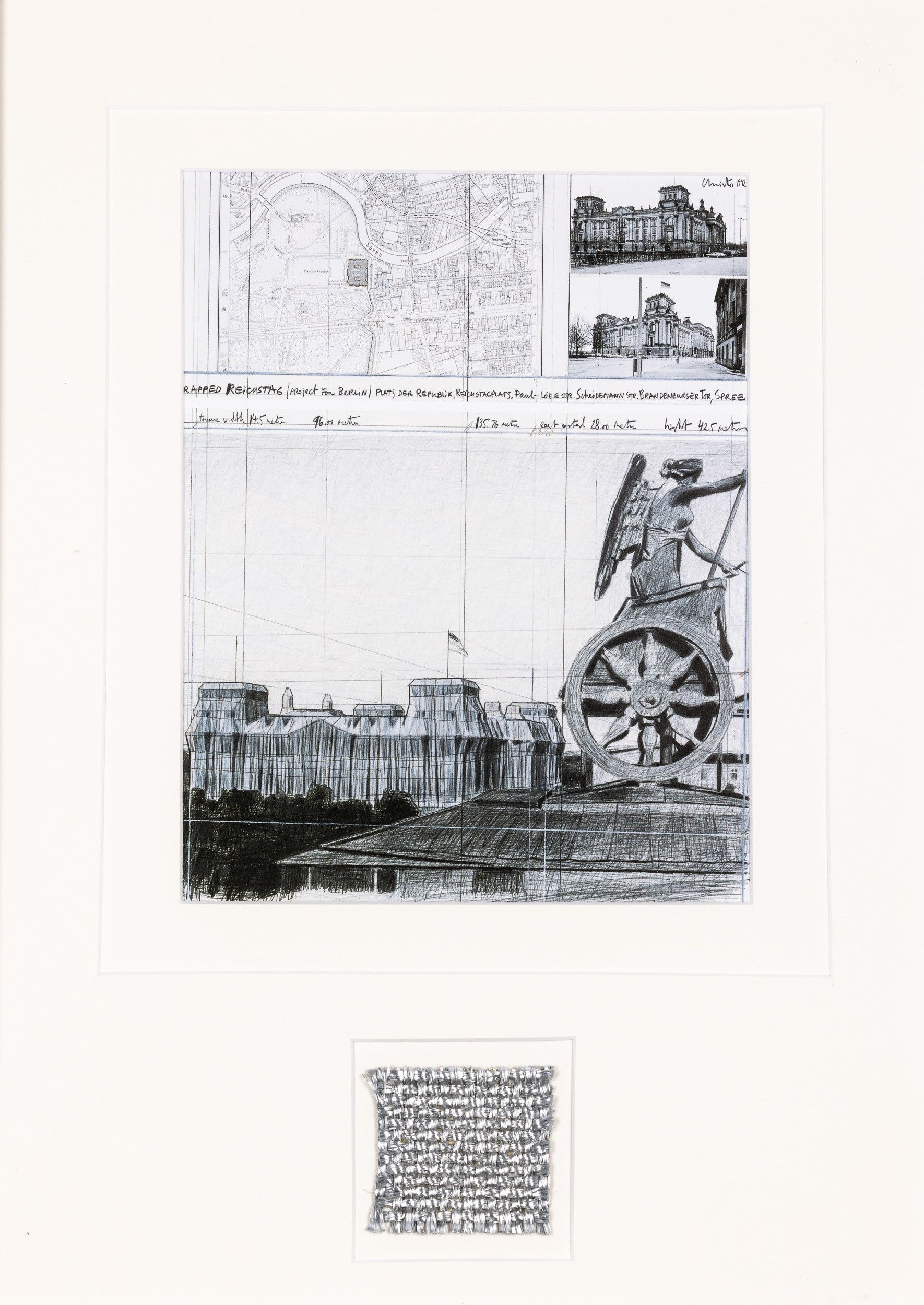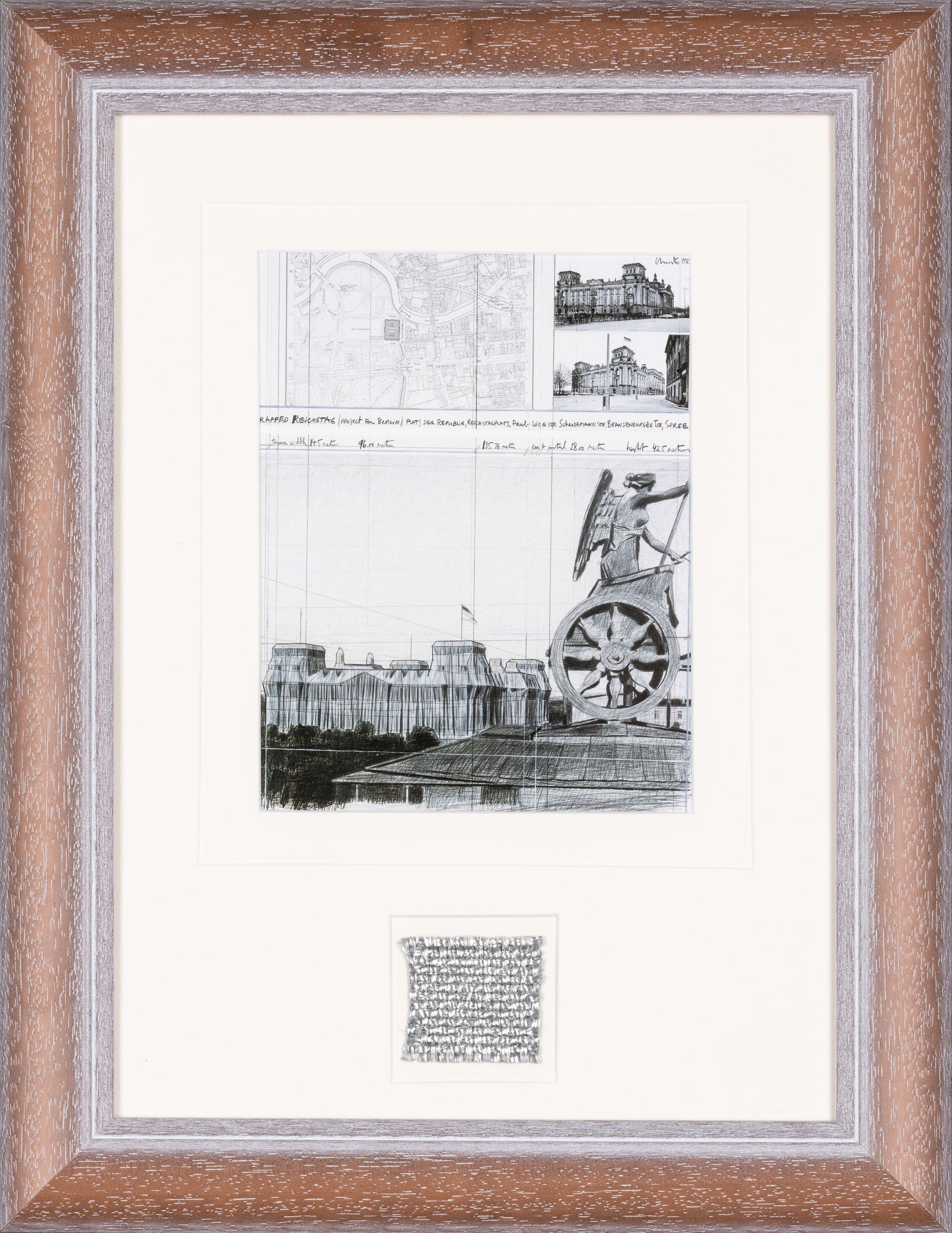 litografia offset con pezzo di tessuto, Largh. 16 - Alt. 21 Cm