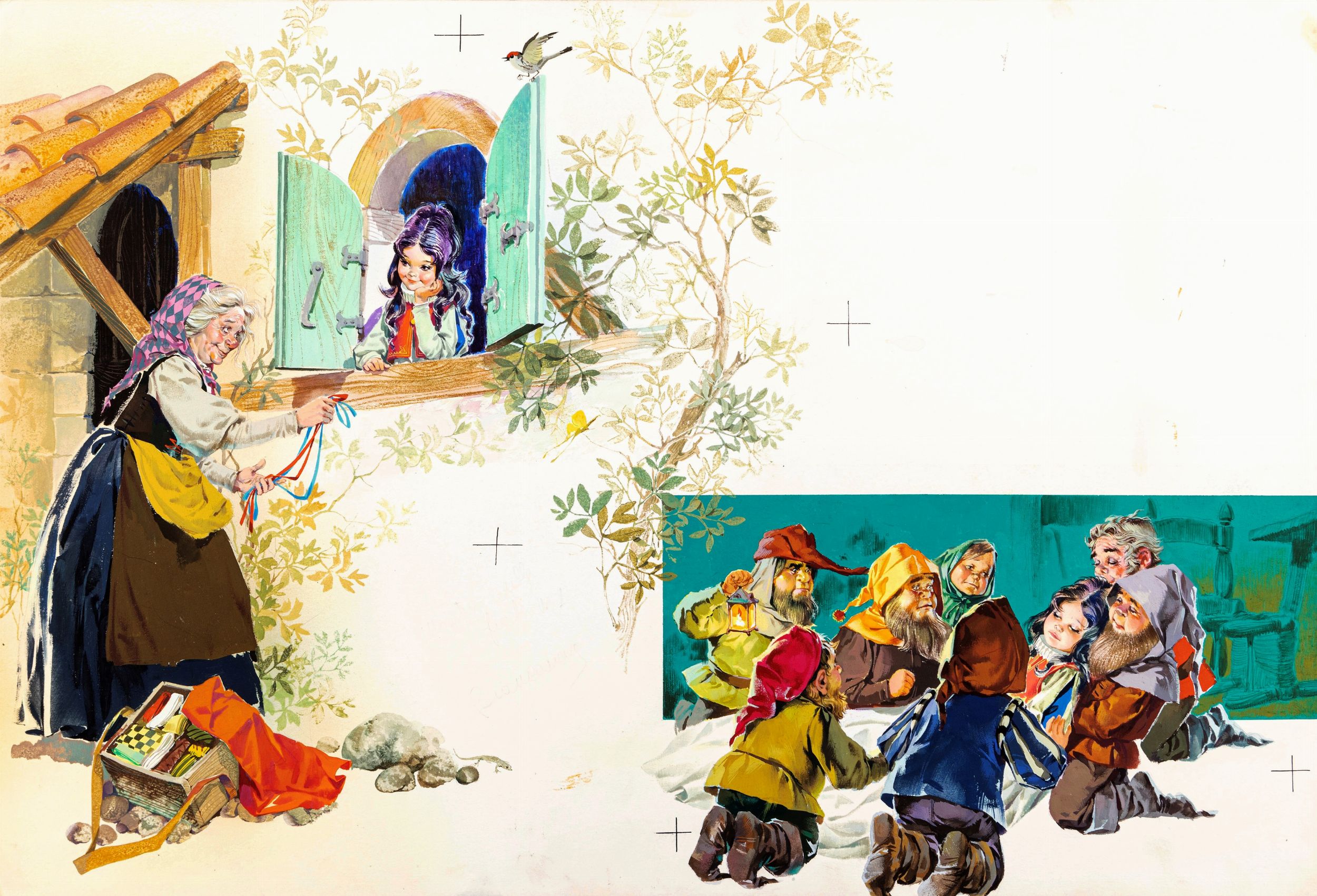 1966 Illustrazione originale realizzata da Pikka per la fiaba Biancaneve edita nel 1966.