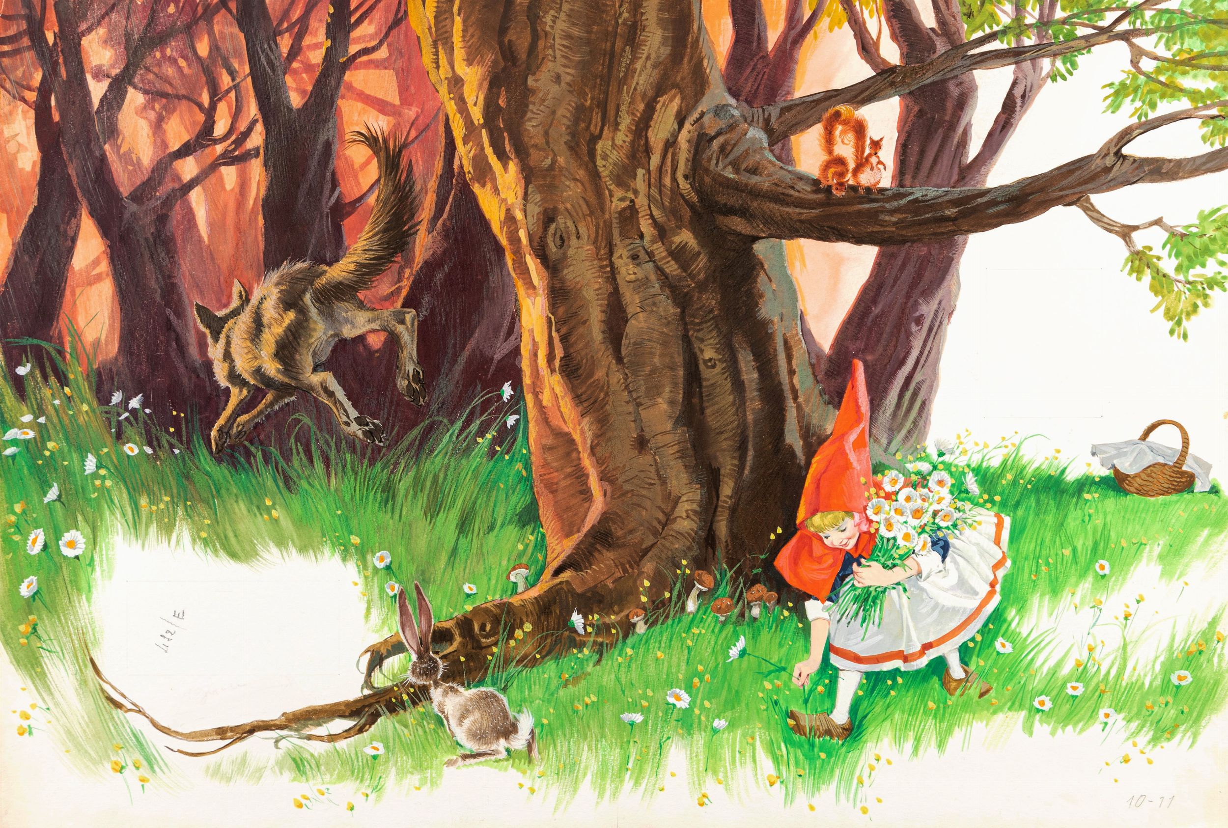1968 Illustrazione originale realizzata da Maraja per la fiaba Cappuccetto rosso edita nel 1968.