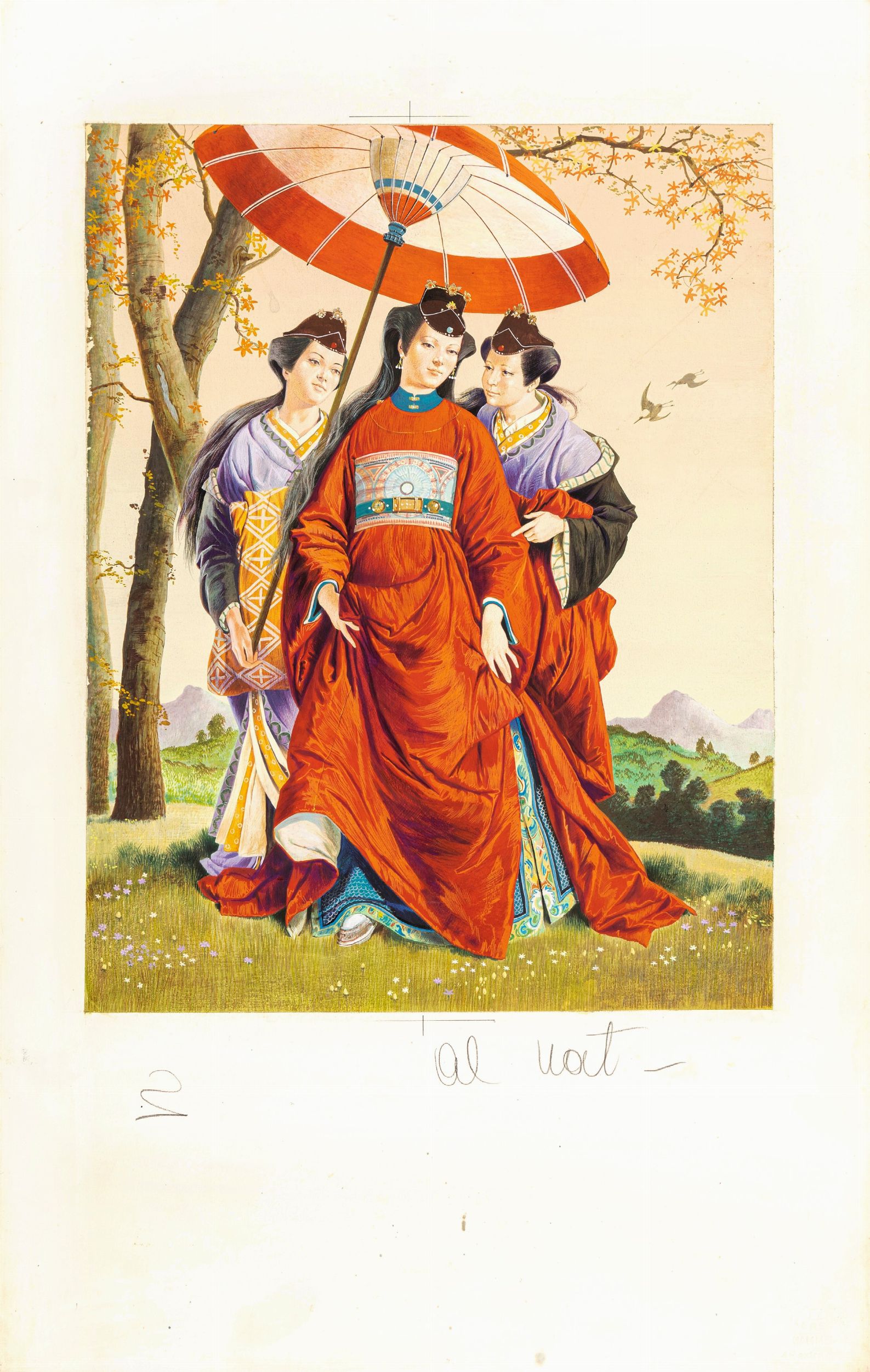 1960 Illustrazione originale realizzata da Rizzato per le Fiabe dell'antica Cina edita nel 1960.