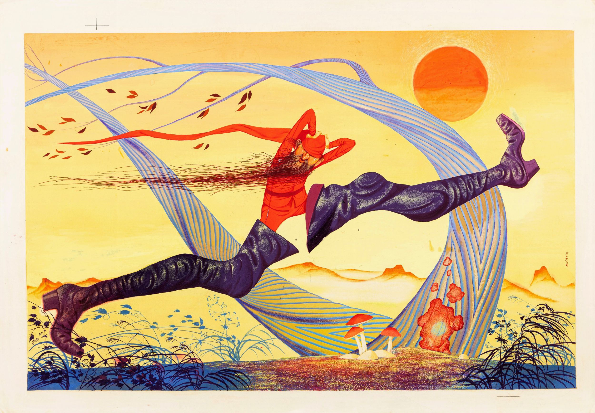 1960 Illustrazione originale realizzata da Santin per le Fiabe francesi edita nel 1960. Lievi pieghe agli angoli. Firmata.