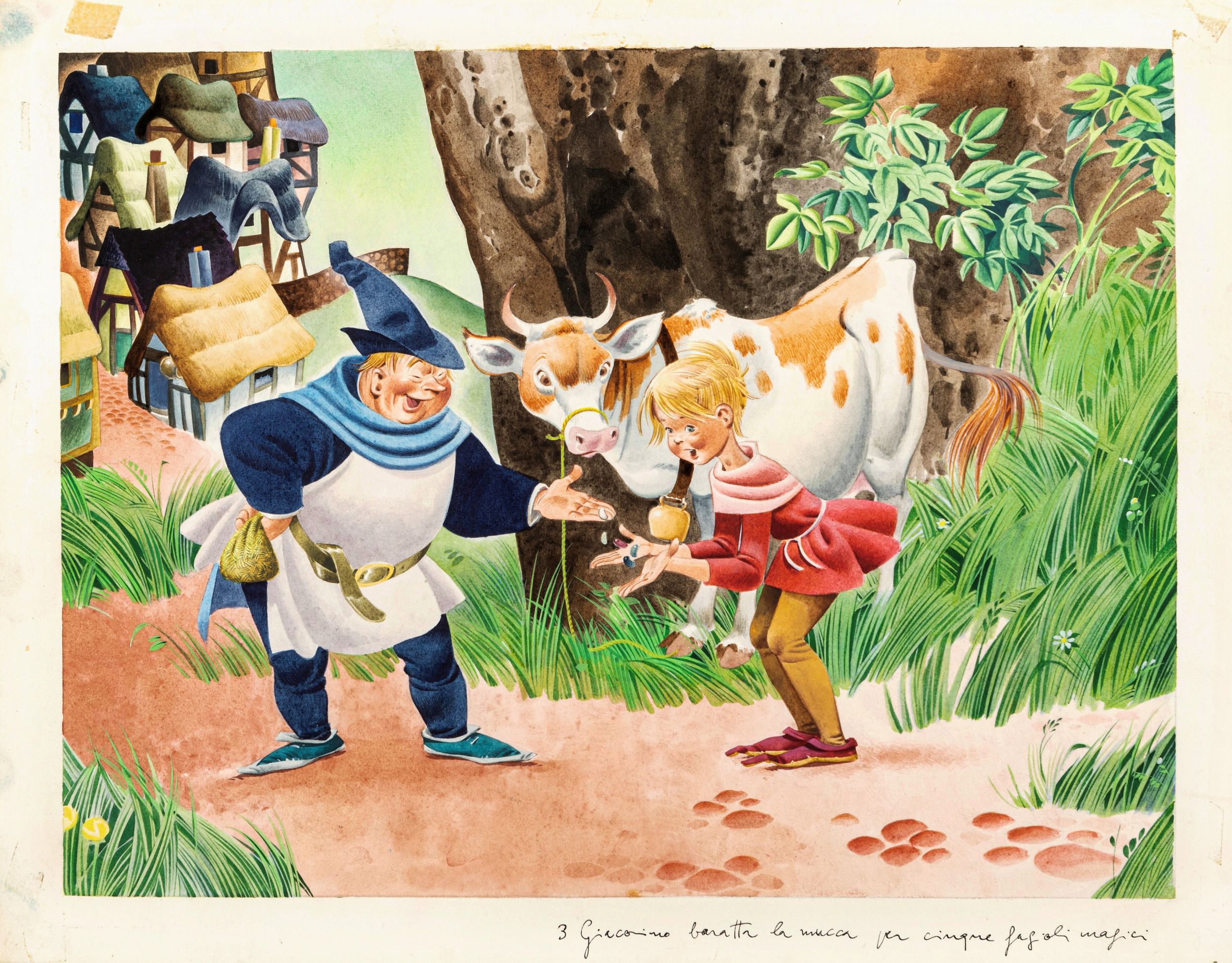 1966 Illustrazione originale realizzata da Lupatelli per la fiaba Giacomino e il fagiolo edita nel 1966.