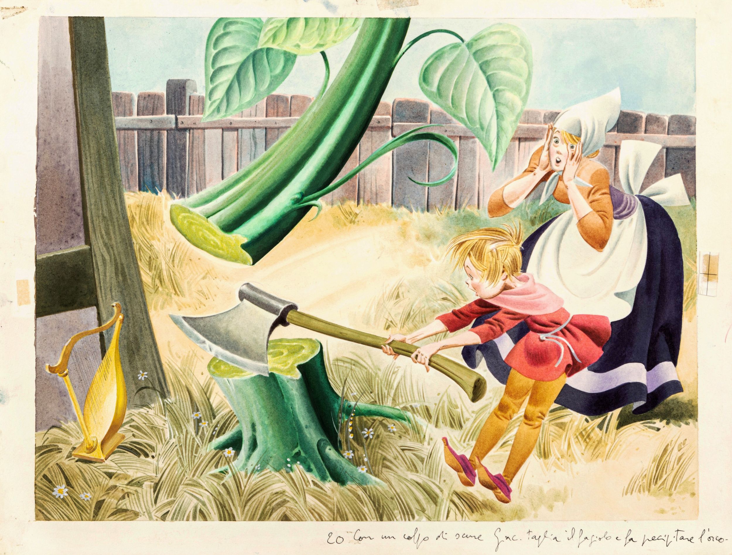 1966 Illustrazione originale realizzata da Lupatelli per la fiaba Giacomino e il fagiolo edita nel 1966.
