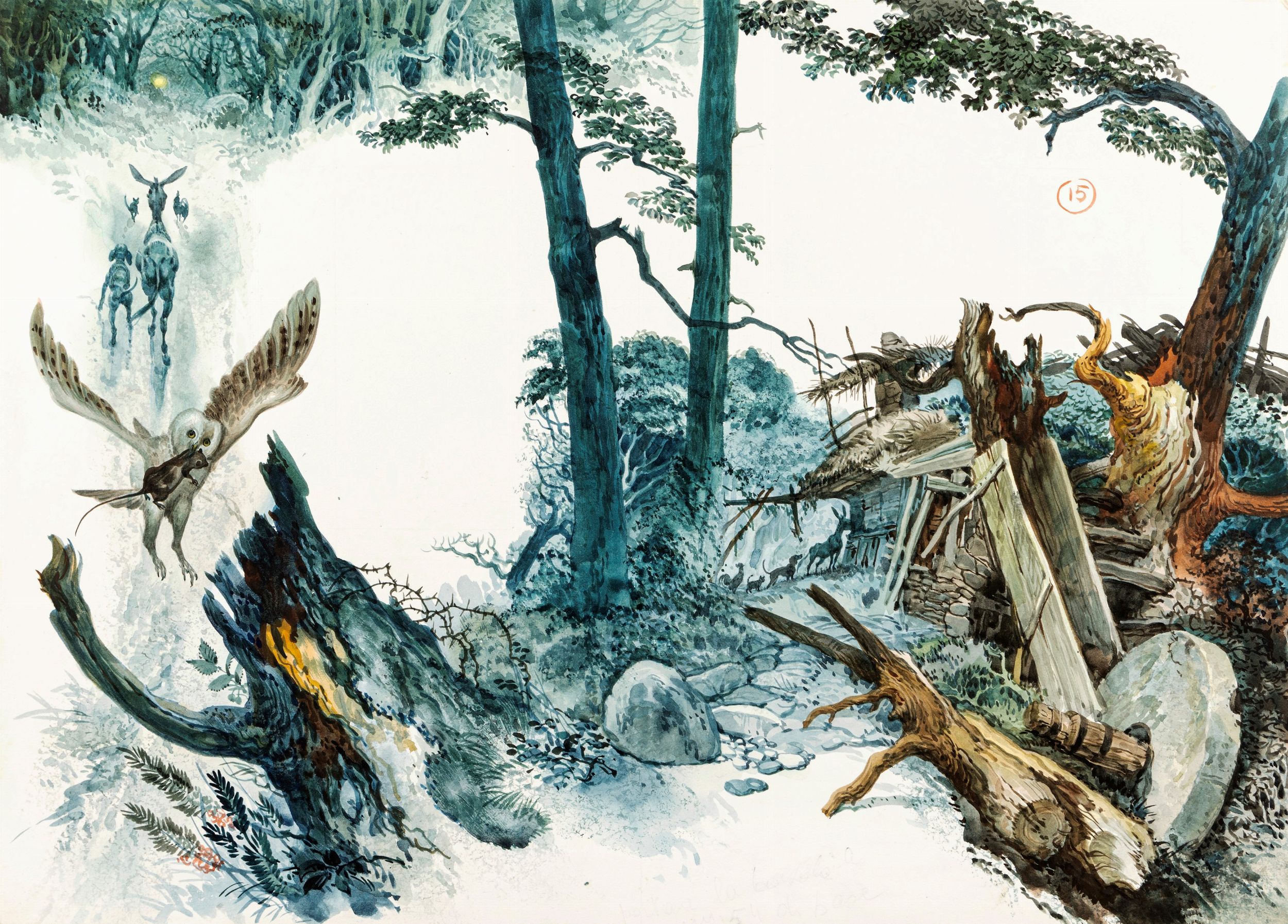 1967 Illustrazione originale realizzata da Ferri per la fiaba I musicanti di Brema edita nel 1967.