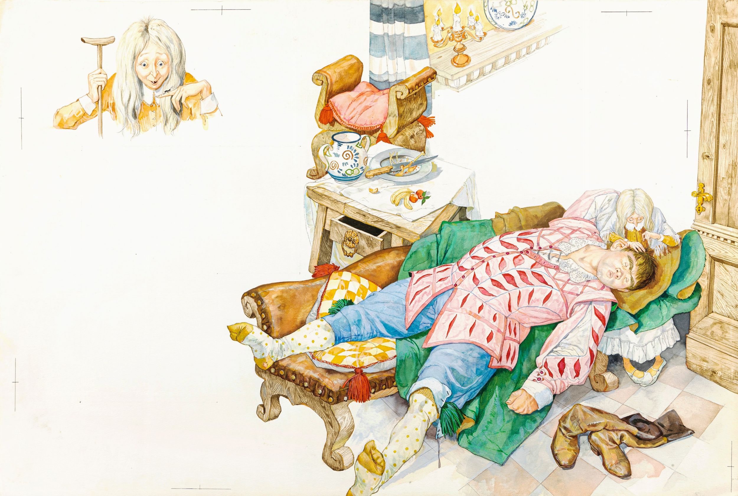 1966 Illustrazione originale realizzata da Sergio per la fiaba I tre capelli dell'orco edita nel 1966.