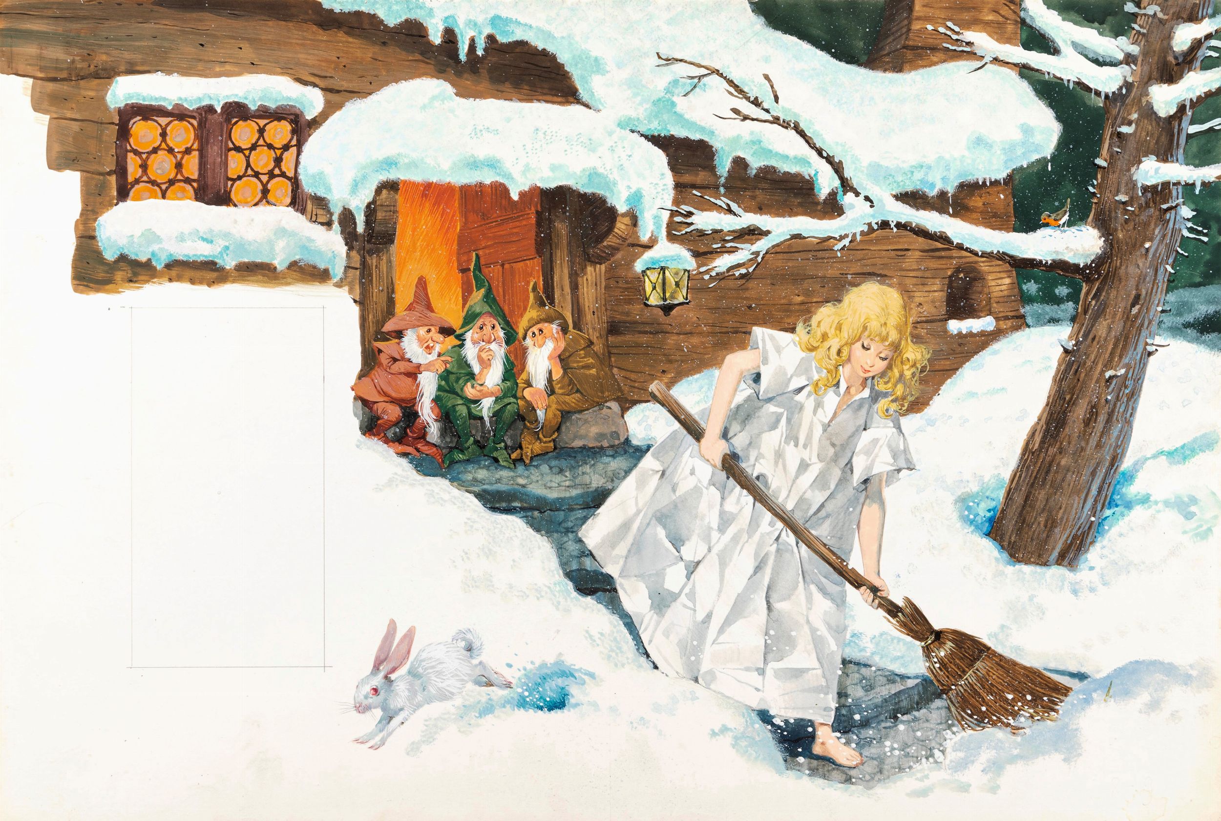 1968 Illustrazione originale realizzata da Maraja per la fiaba I tre nanetti del bosco edita nel 1968.