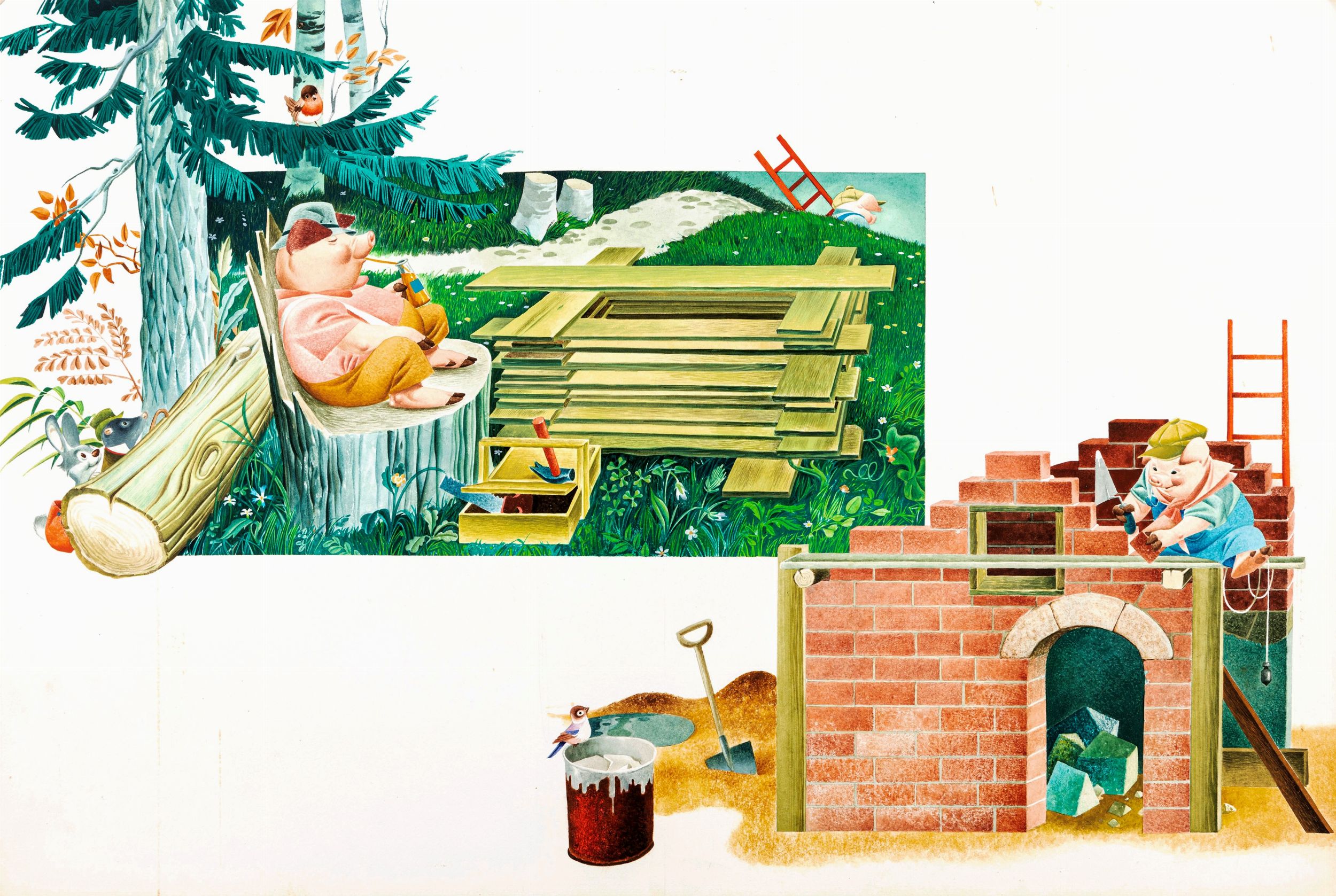 1968 Illustrazione originale realizzata da Lupatelli per la fiaba I tre porcellini edita nel 1968.
