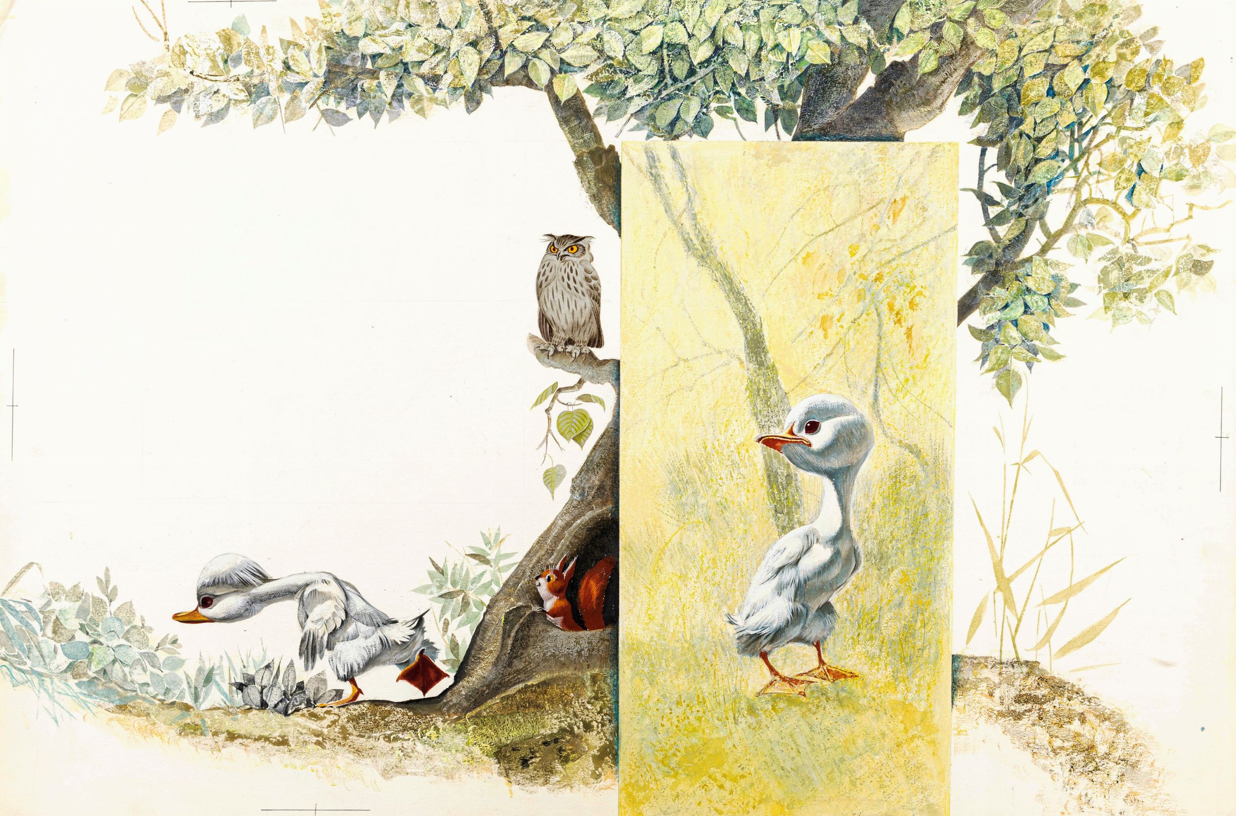 1966 Illustrazione originale realizzata da Fontana per la fiaba Il brutto anatroccolo edita nel 1966. Lievi pieghe agli angoli.