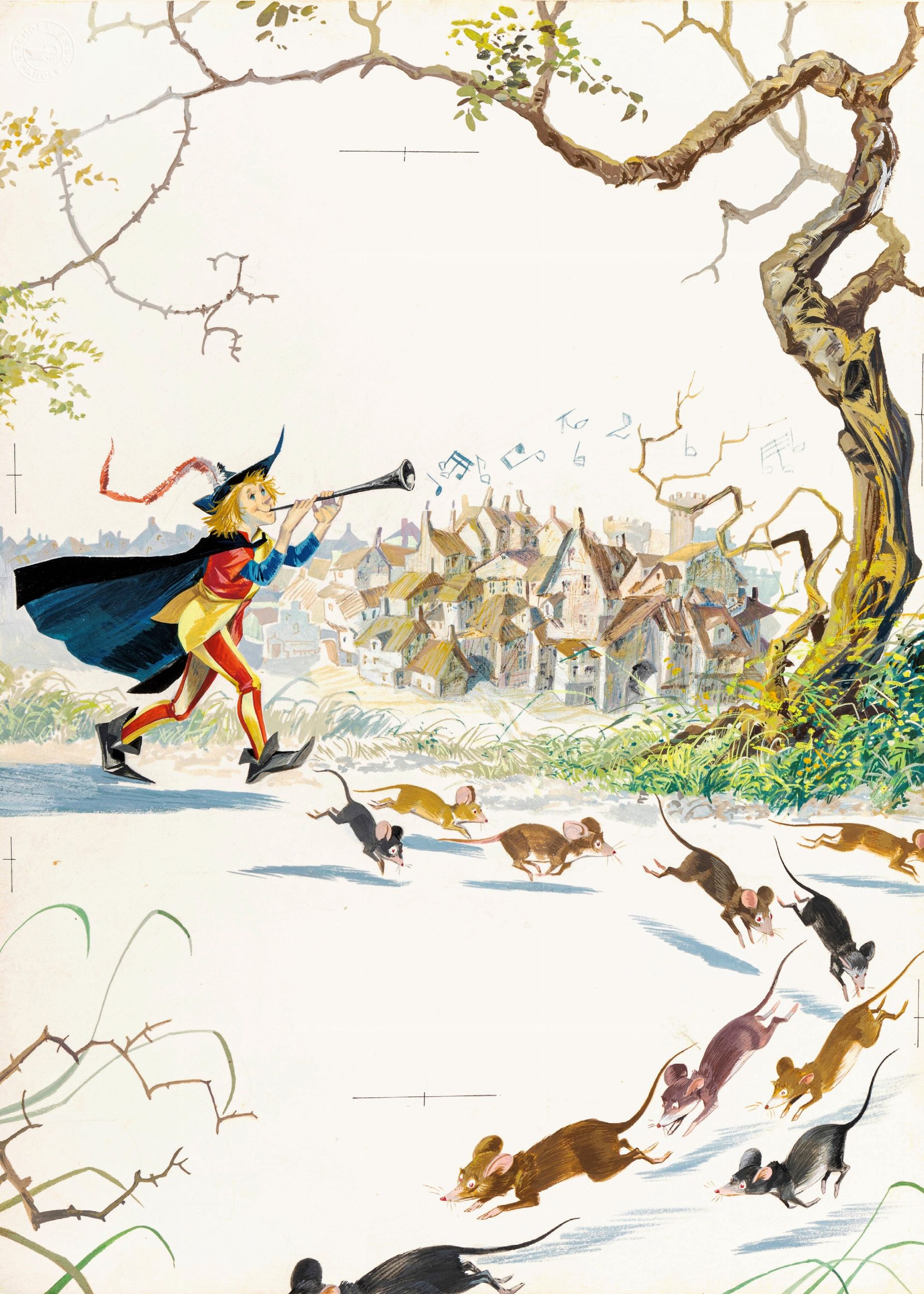 1966 Illustrazione originale realizzata da Pinardi per la fiaba Il piffero magico edita nel 1966.