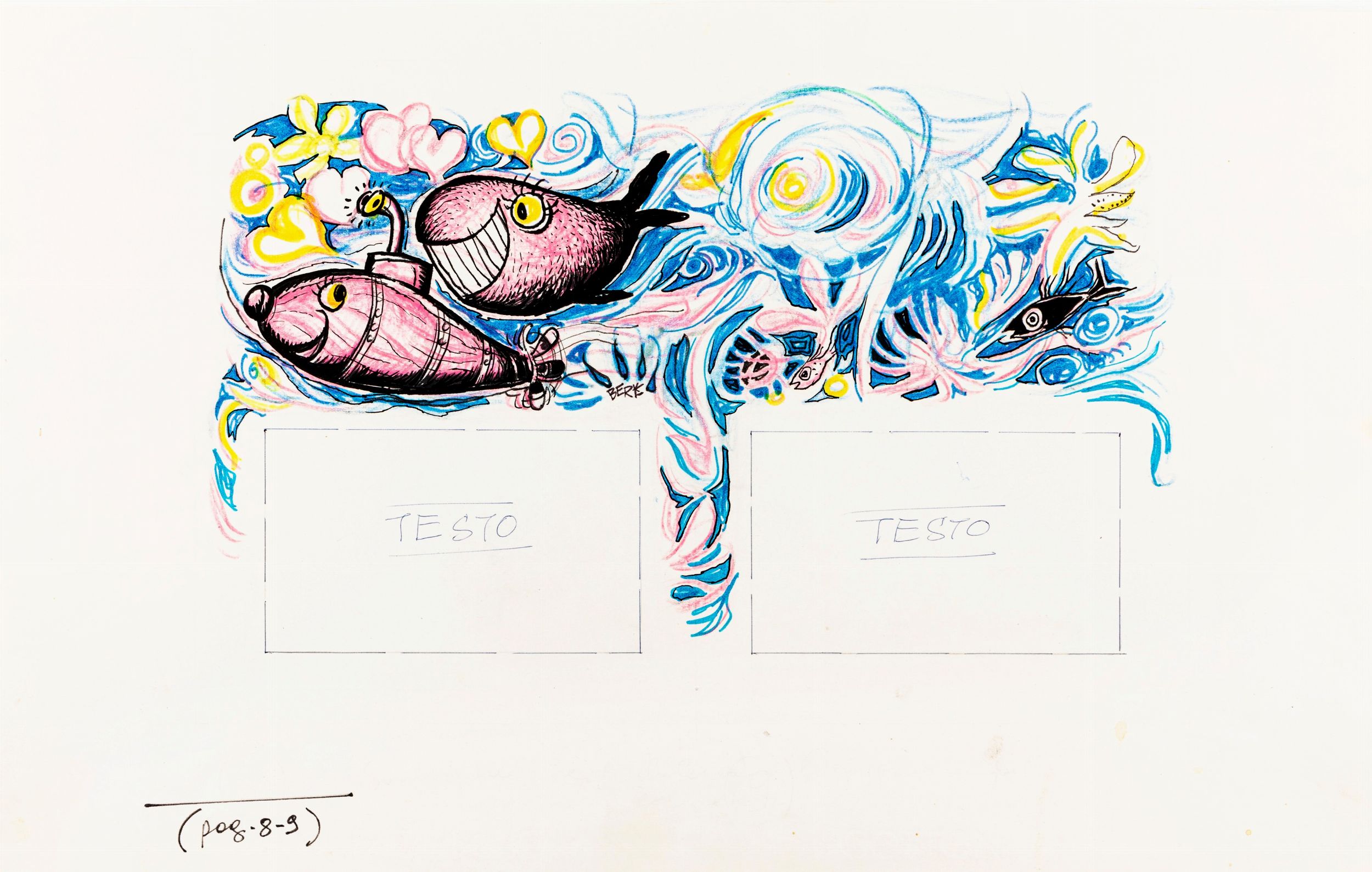 1976 Illustrazione originale realizzata da Berti per la favola Il sommergibile innamorato edita nel 1976. Firmata.