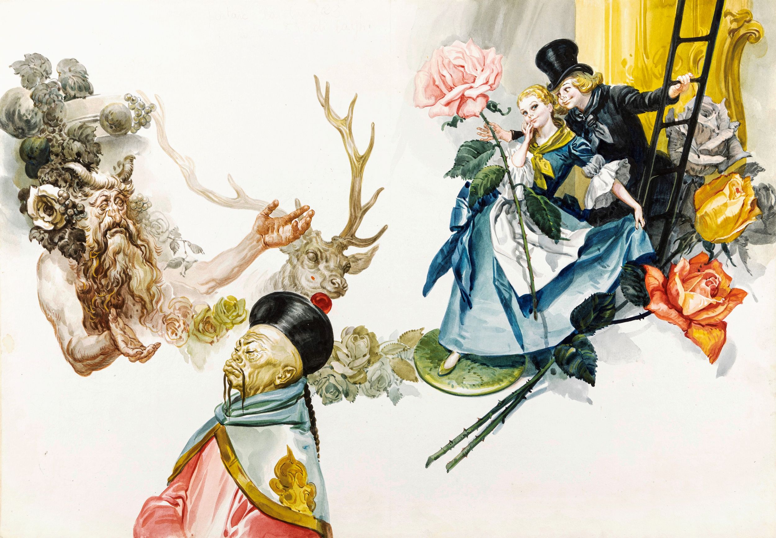 1966 Illustrazione originale realizzata da Maraja per la fiaba La pastorella e lo spazzacamino edita nel 1966.