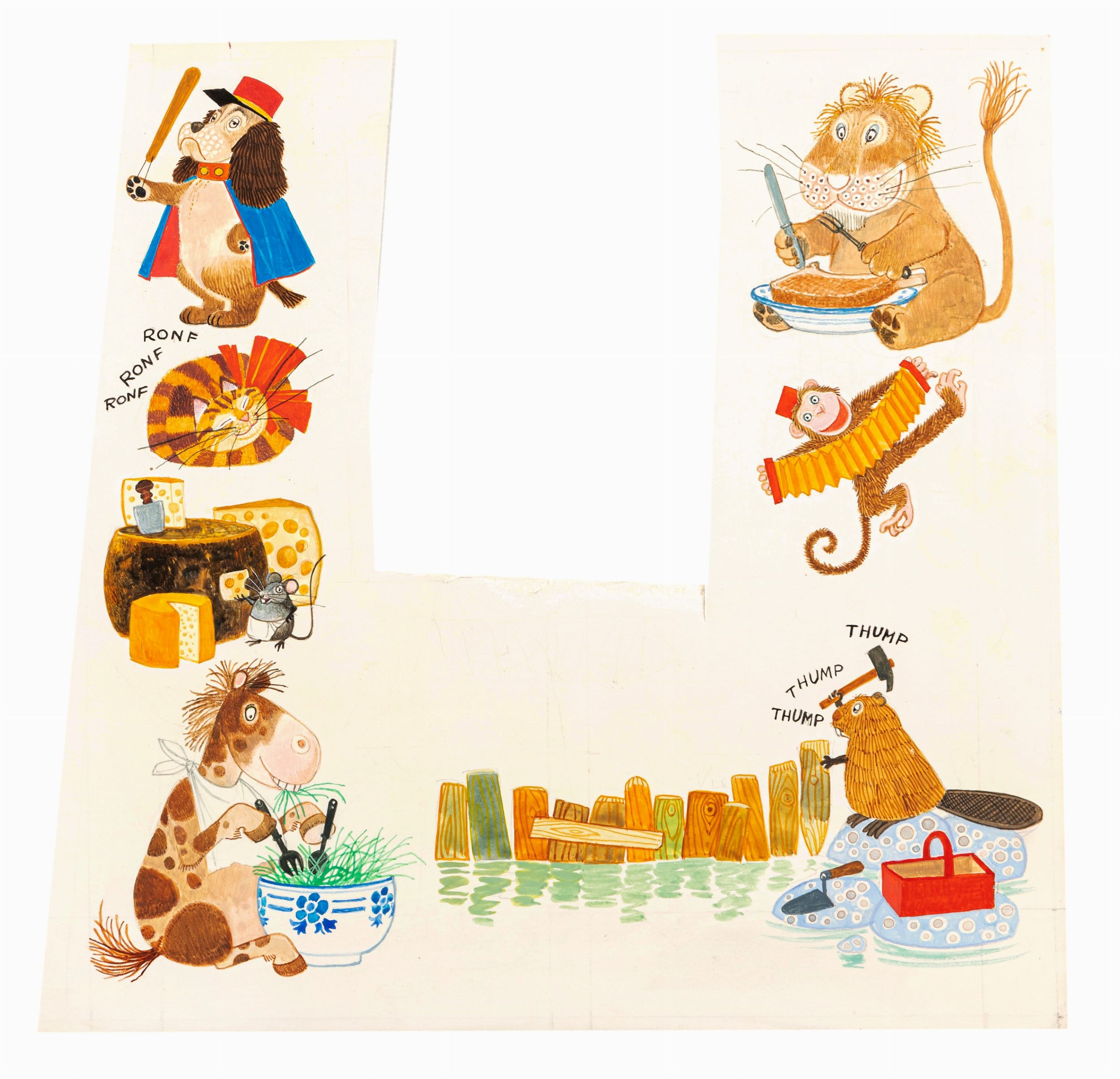 1970 Illustrazione originale realizzata da Benvenuti per la favola Lancillotto aquilotto a cucù edita nel 1970.