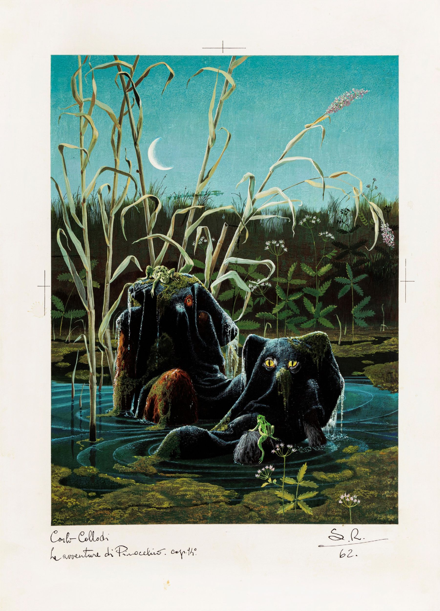 1962 Illustrazione originale realizzata da Sergio per la sua celebre interpretazione de Le avventure di Pinocchio di Carlo Collodi, edita tra il 1961 e il 1965. Firmata, datata e titolata.