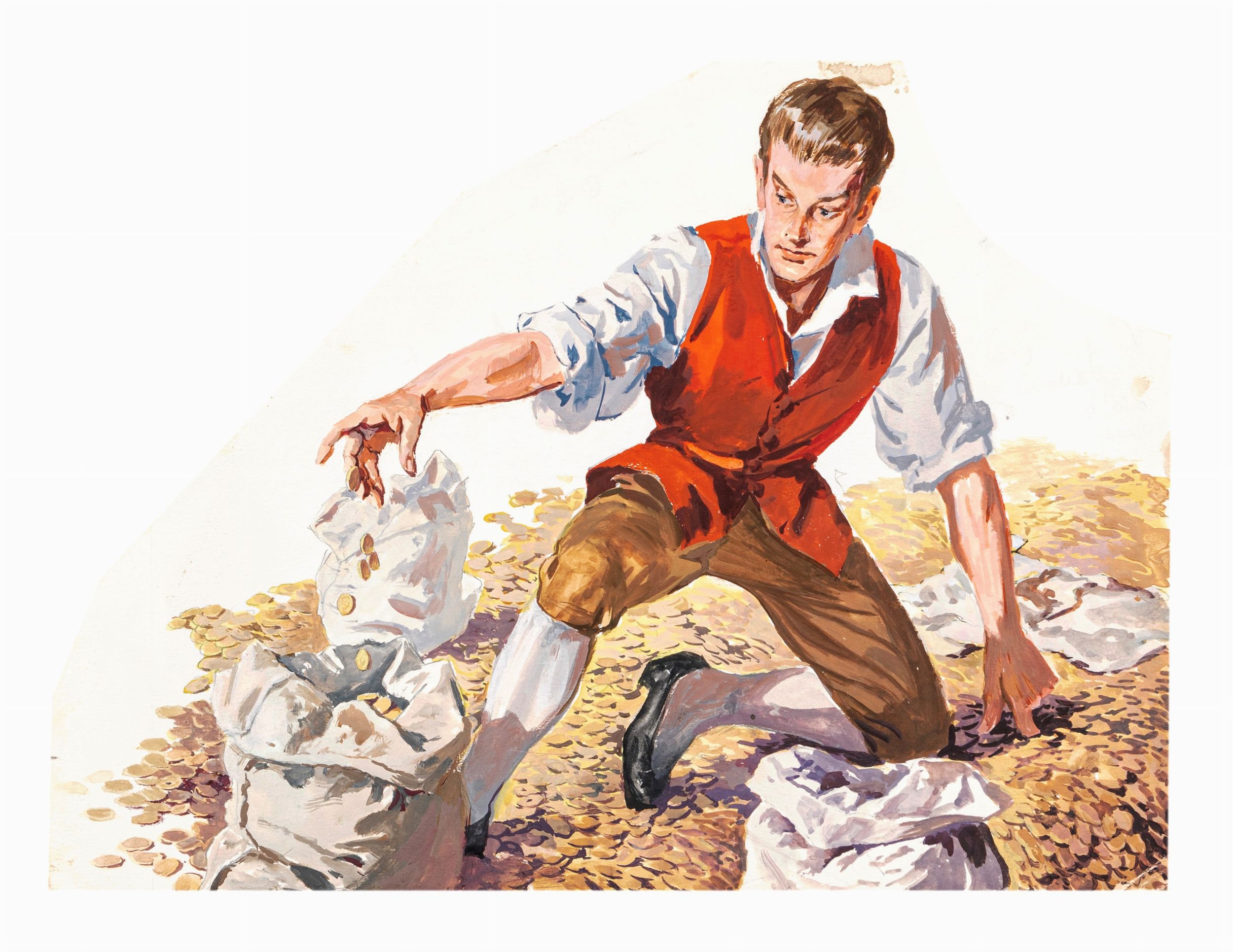 1963 Illustrazione originale realizzata da Tabet per il romanzo L'isola del tesoro di Robert Louis Stevenson edito nel 1963.