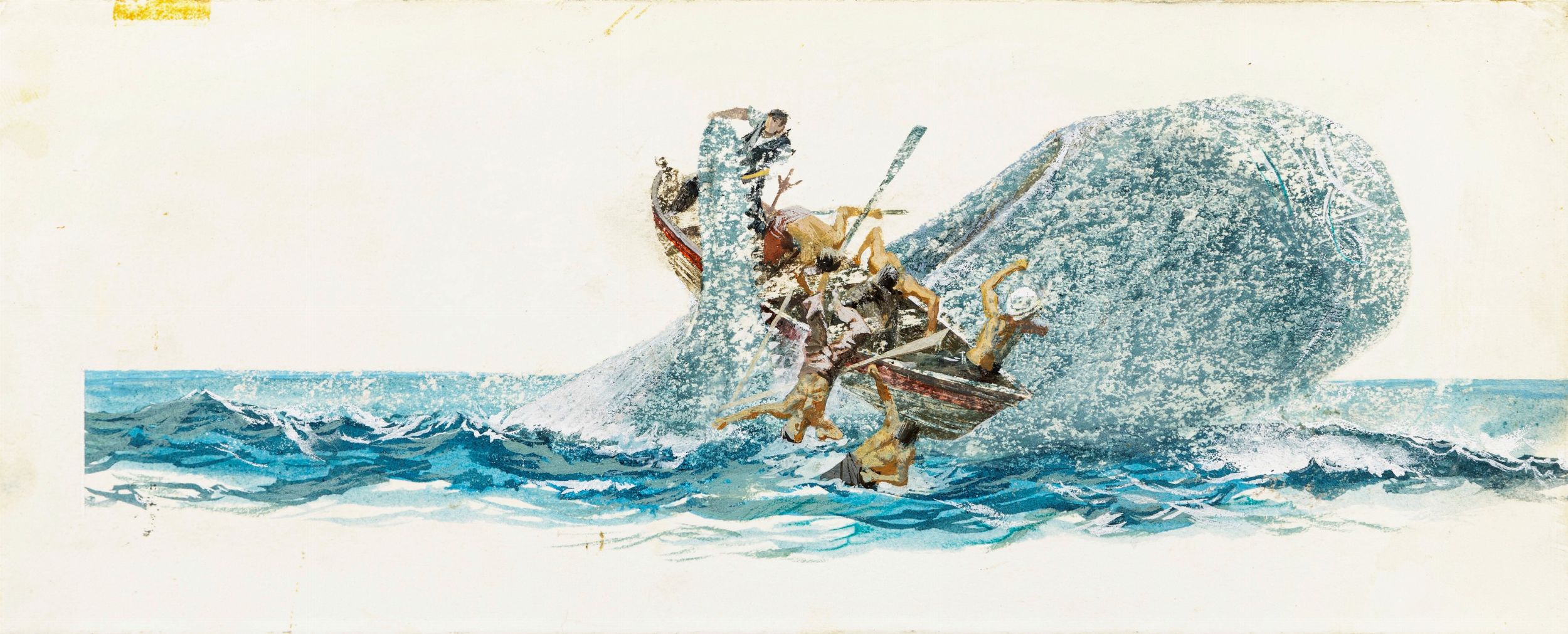 1965 Illustrazione originale realizzata da De Gaspari per il romanzo Moby Dick di Herman Melville edito nel 1965.