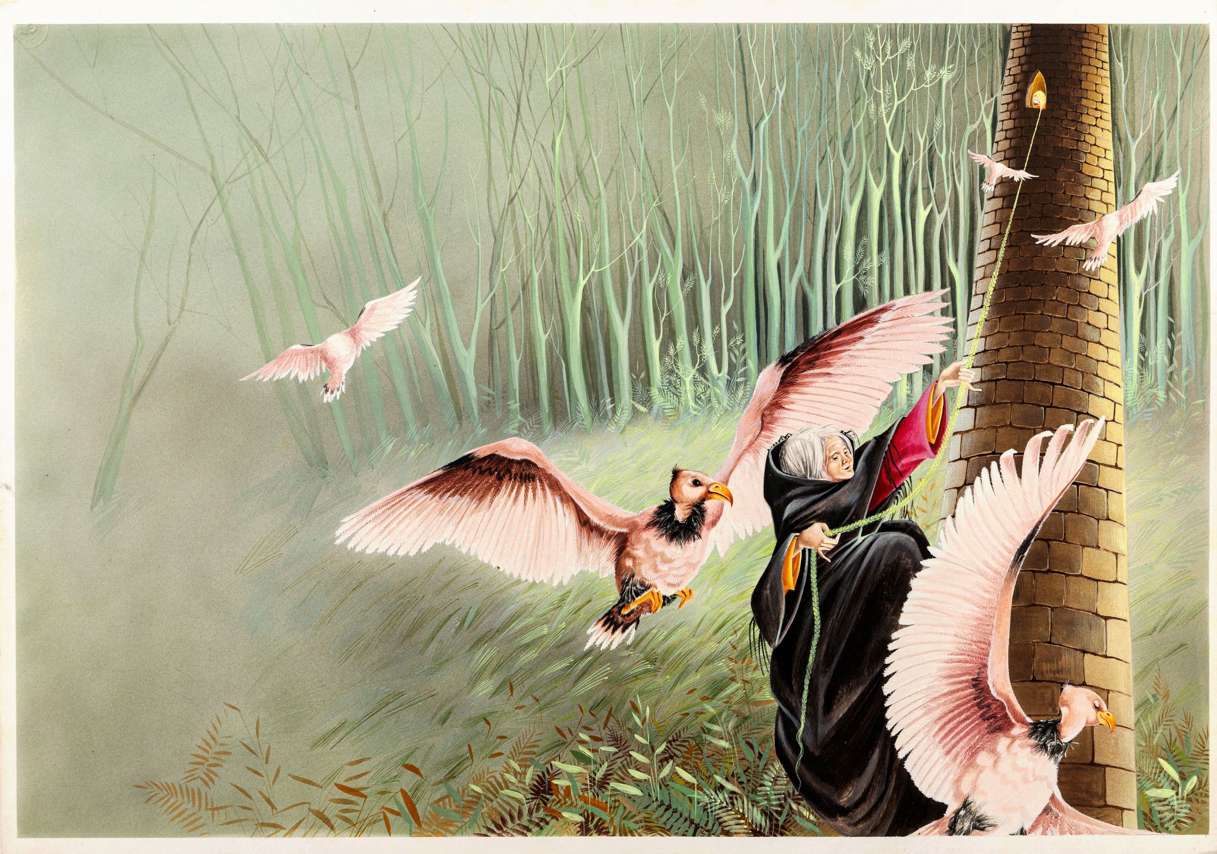 anni '60 Illustrazione originale realizzata da Pinardi durante gli anni '60 per la fiaba Raperonzolo.