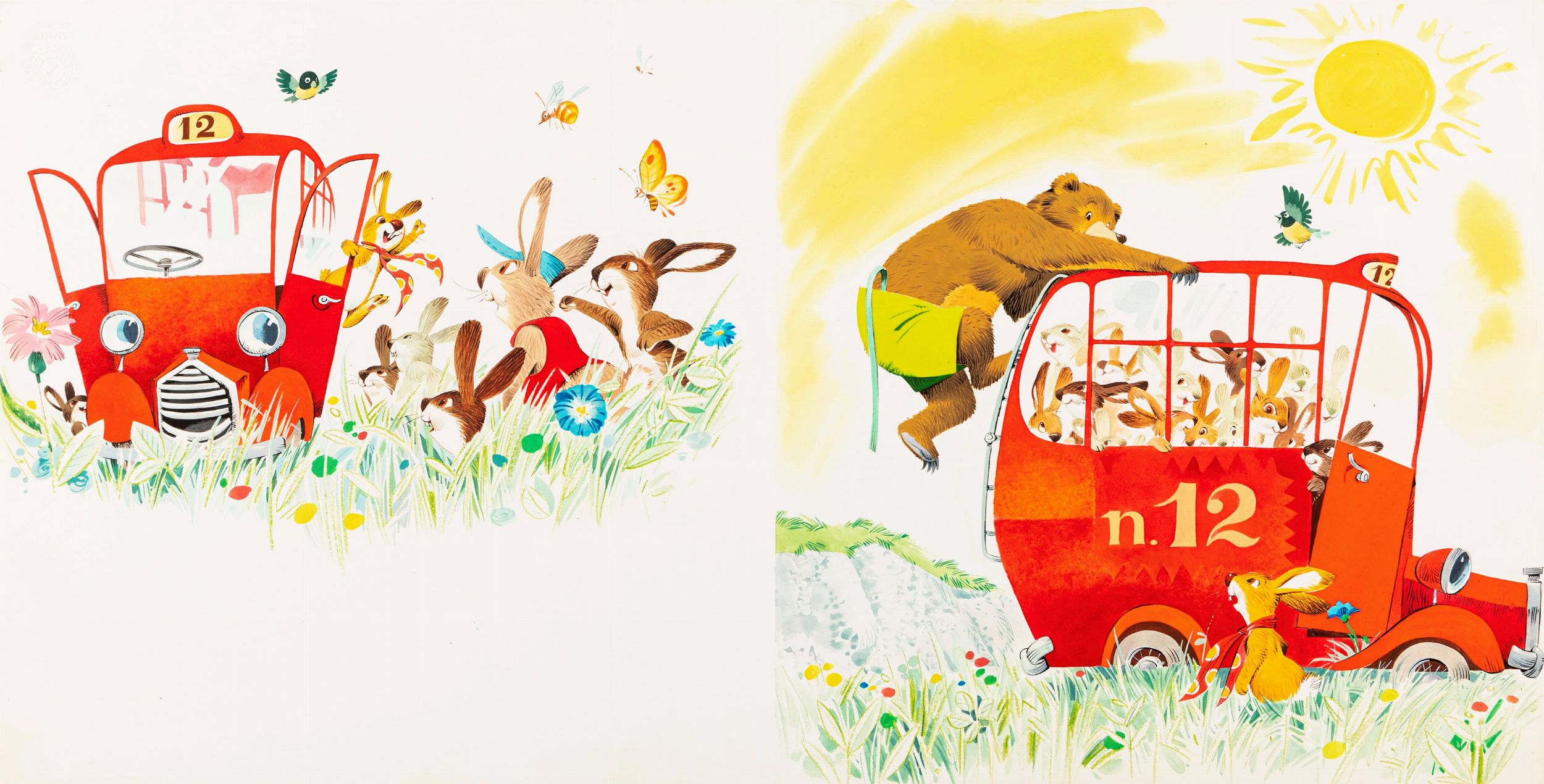 1970 Illustrazione originale realizzata da Lupatelli per la favola Starter leprotto autista edita nel 1970.