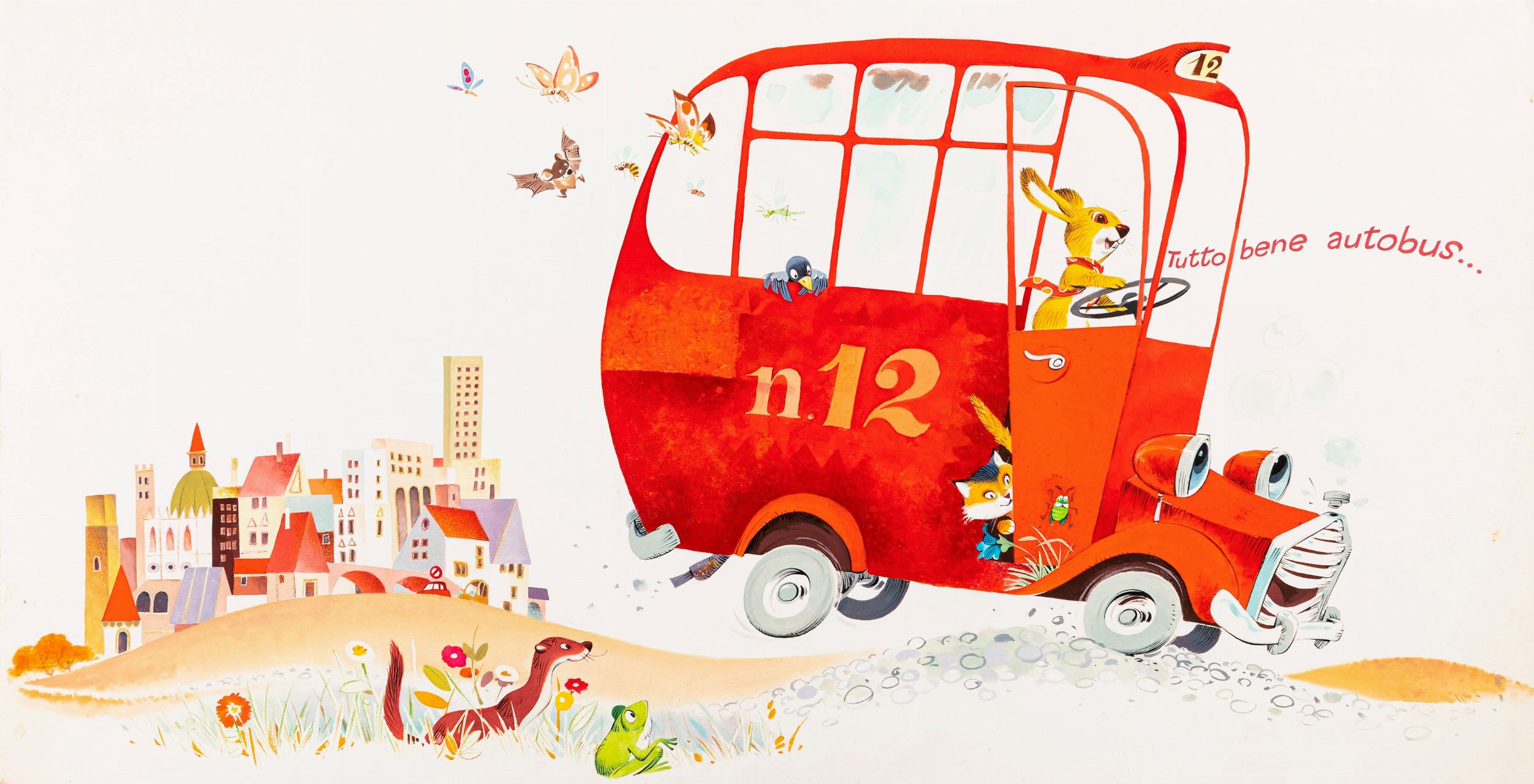 1970 Illustrazione originale realizzata da Lupatelli per la favola Starter leprotto autista edita nel 1970. Lieve ondulatura.