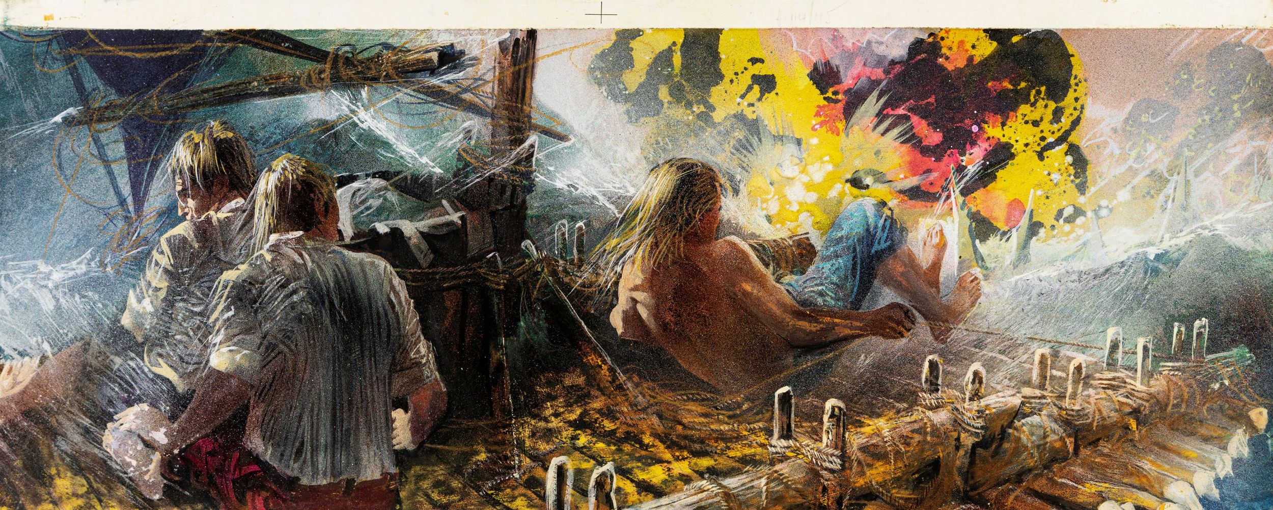 1963 Illustrazione originale realizzata da Renna per il romanzo Viaggio al centro della Terra di Jules Verne edito nel 1963.