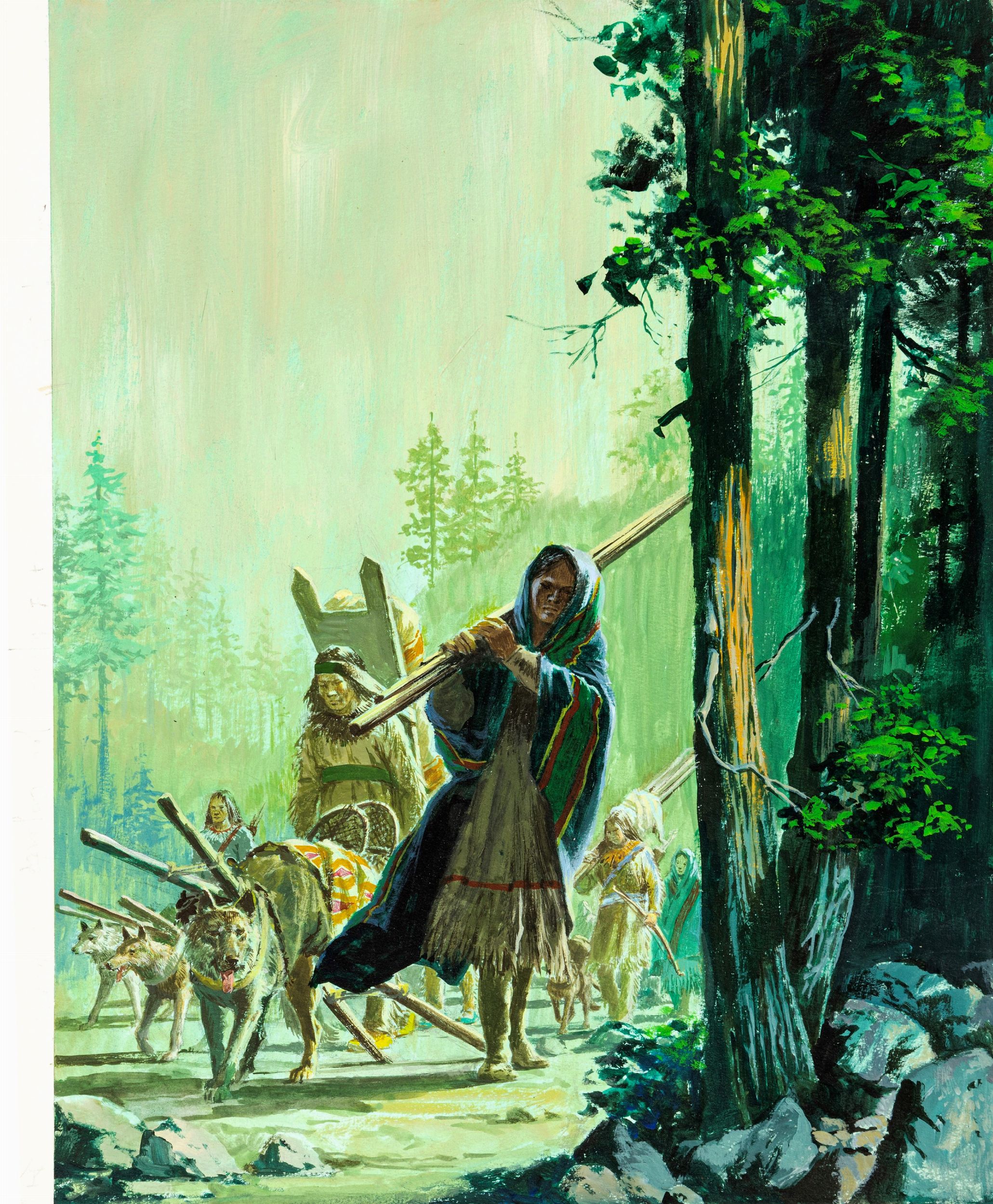 1965 Illustrazione originale realizzata da Nardini per il romanzo Zanna Bianca di Jack London edito nel 1965.