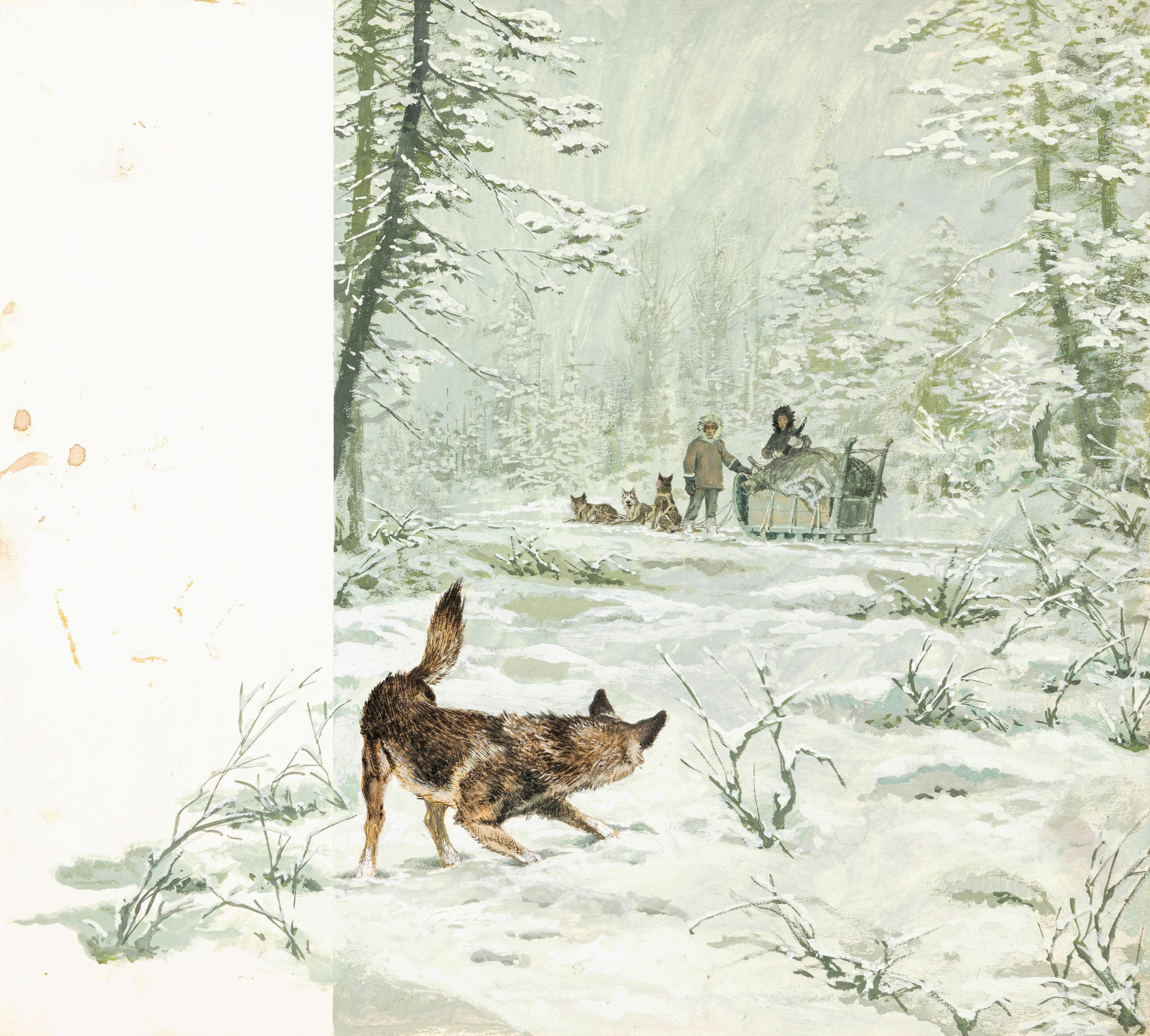 1965 Illustrazione originale realizzata da Nardini per il romanzo Zanna Bianca di Jack London edito nel 1965.