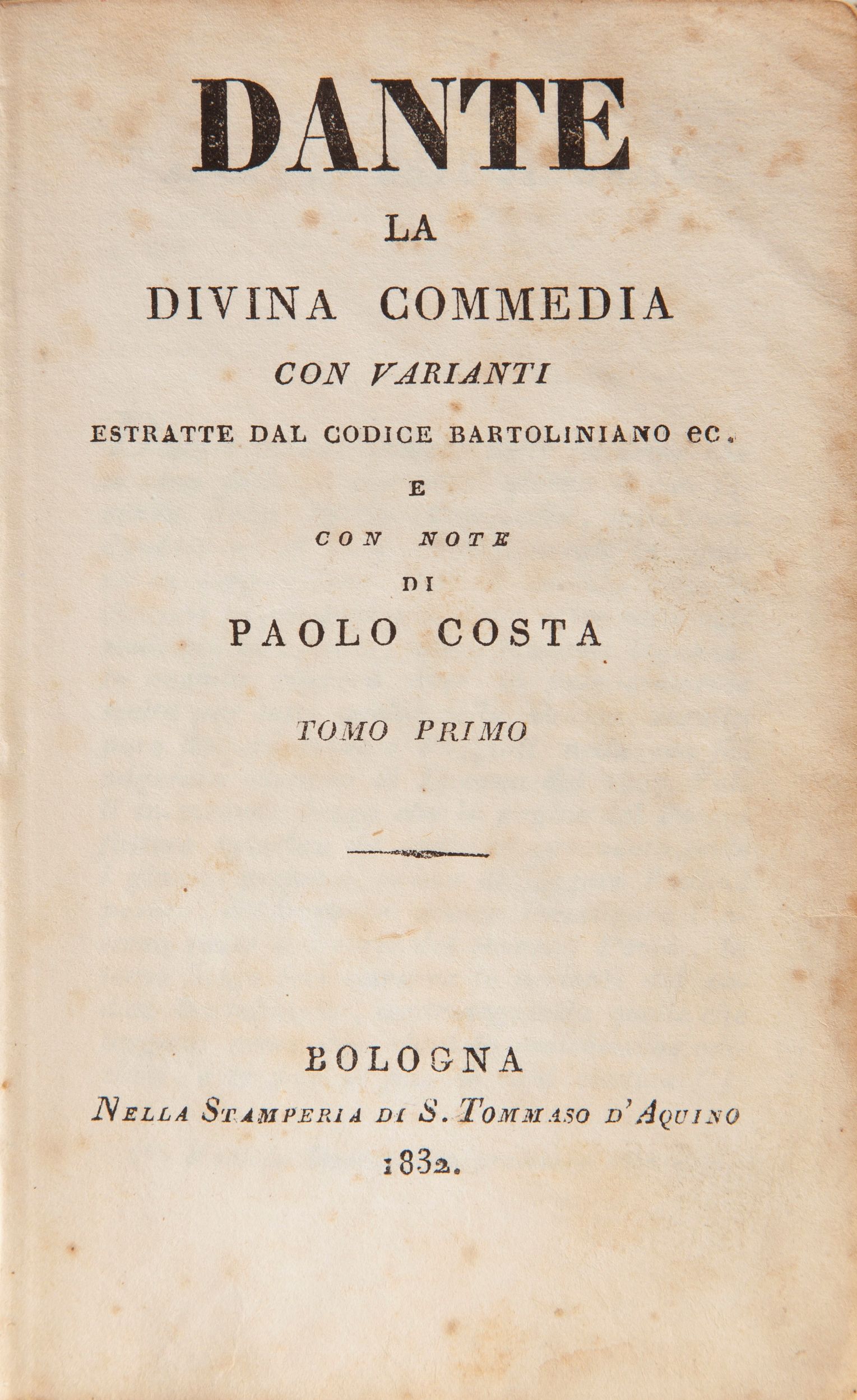 cm 14x9 Riccardo Masi, Bologna 1832 In 16°. 3 volumi con antiporta e frontespizio figurato Legature coeve in mezza pelle con titoli in oro al dorso. Qualche difetto e rottura alle legature. Lotto non passibile di restituzione.