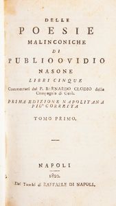 cm 16,5x10 Raffaele di Napoli, Napoli 1820 In 16° Cinque tomi in tre volumi. Legature coeve in mezza pelle con [..]