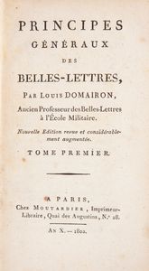 cm 17,5x11 Moutardier, Parigi 1802 In 12°. Opera didattica del letterato francese (1745-1807), professore de [..]