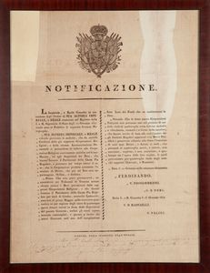 Incisione su carta, cm 57x42 In cornice 61,5x47 A favore degli Enti religiosi soppressi dalle Leggi Napoleonic [..]