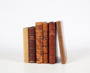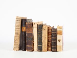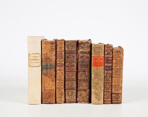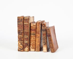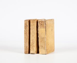 cm 14x9 circa 3 Volumetti in 16° Legature coeve in pelle e mezza pelle con titoli e fregi in oro ai dorsi. Tracce [..]