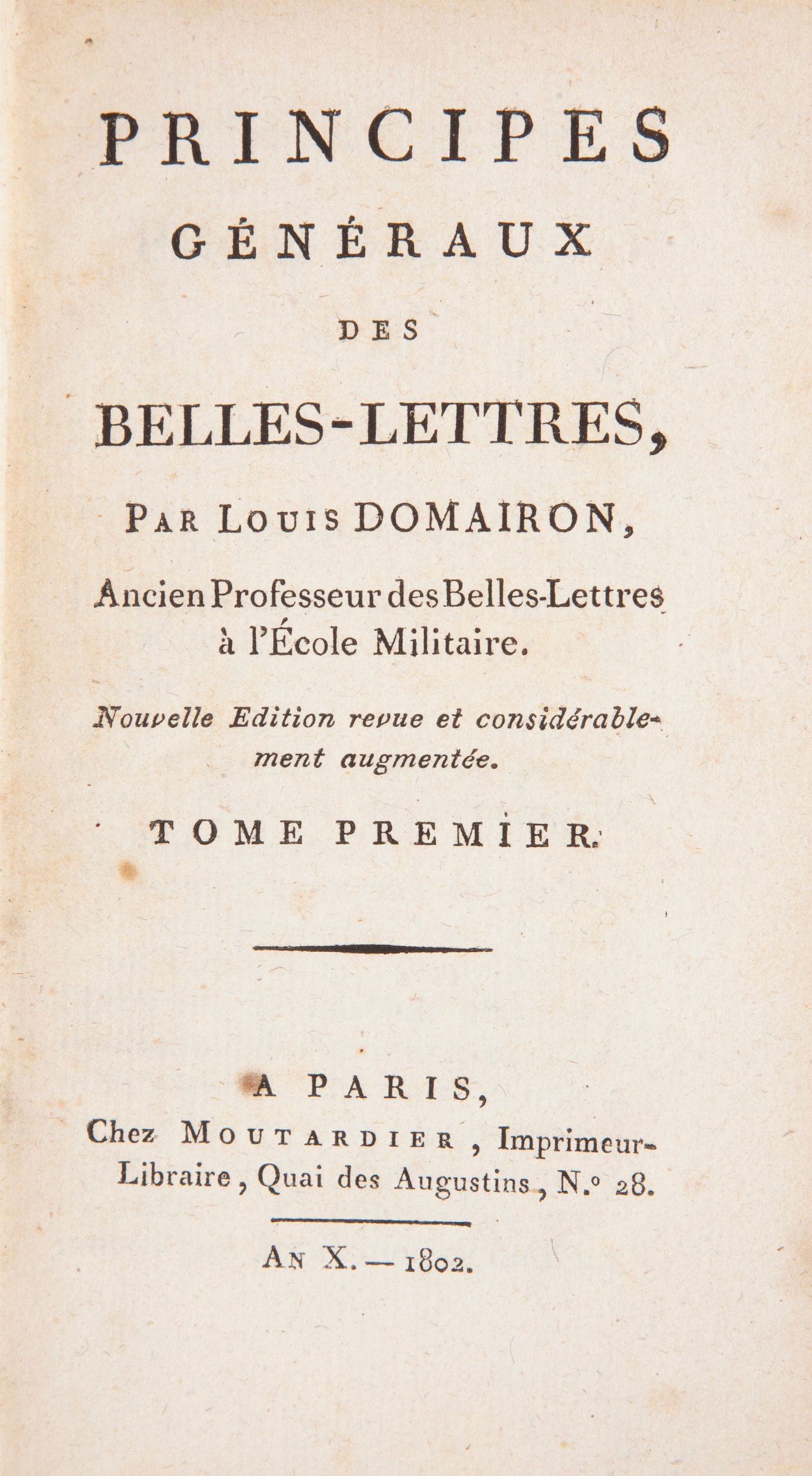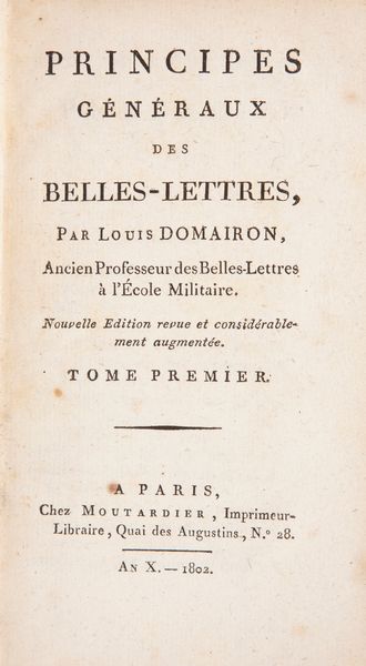Moutardier, Parigi 1802 In 12°. Opera didattica del letterato francese (1745-1807), professore de l'