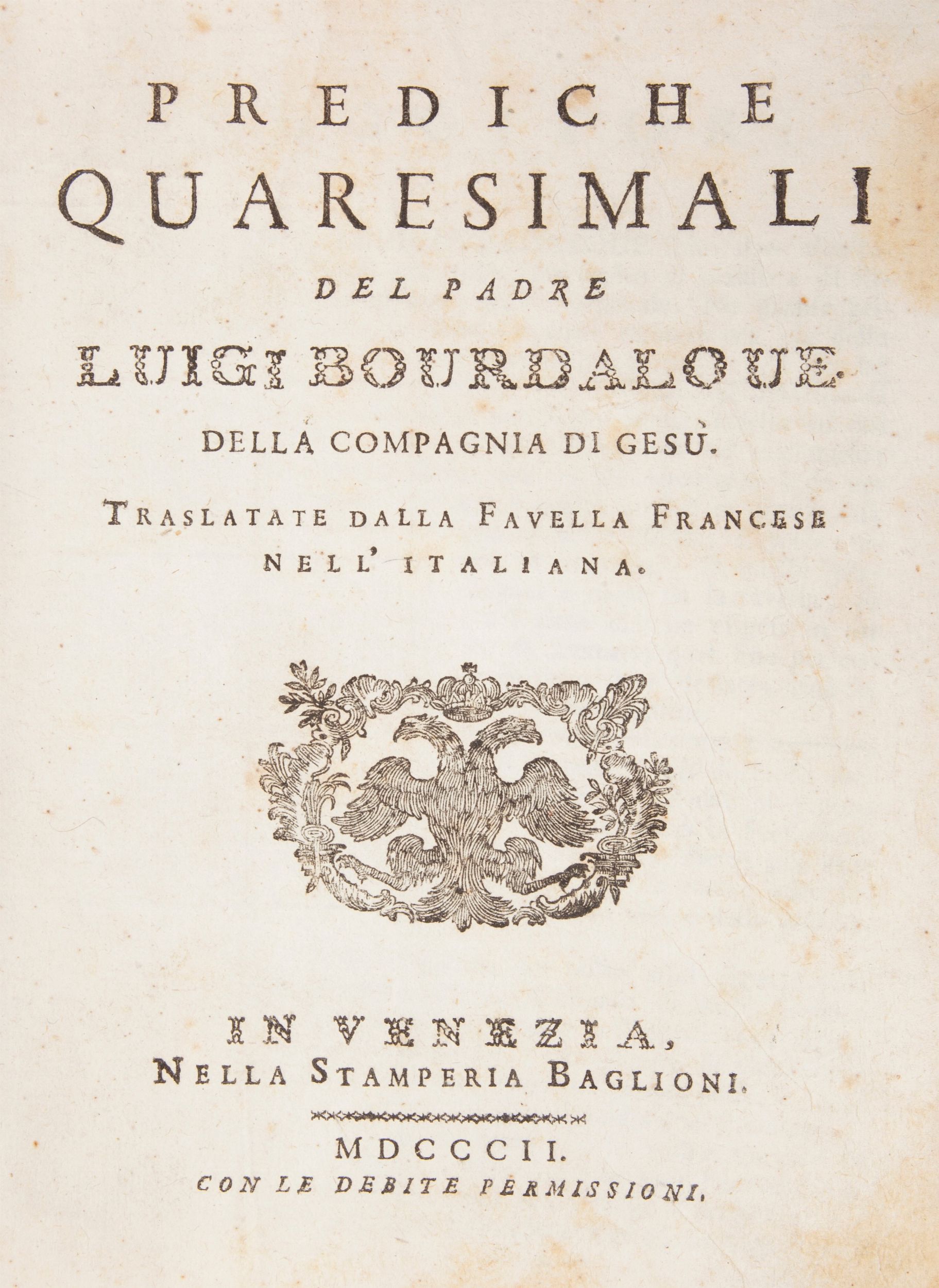 seicenteschi della Compagnia di Gesù Legatura in mezza pelle coeva, titoli e fregi in oro al dorso.
